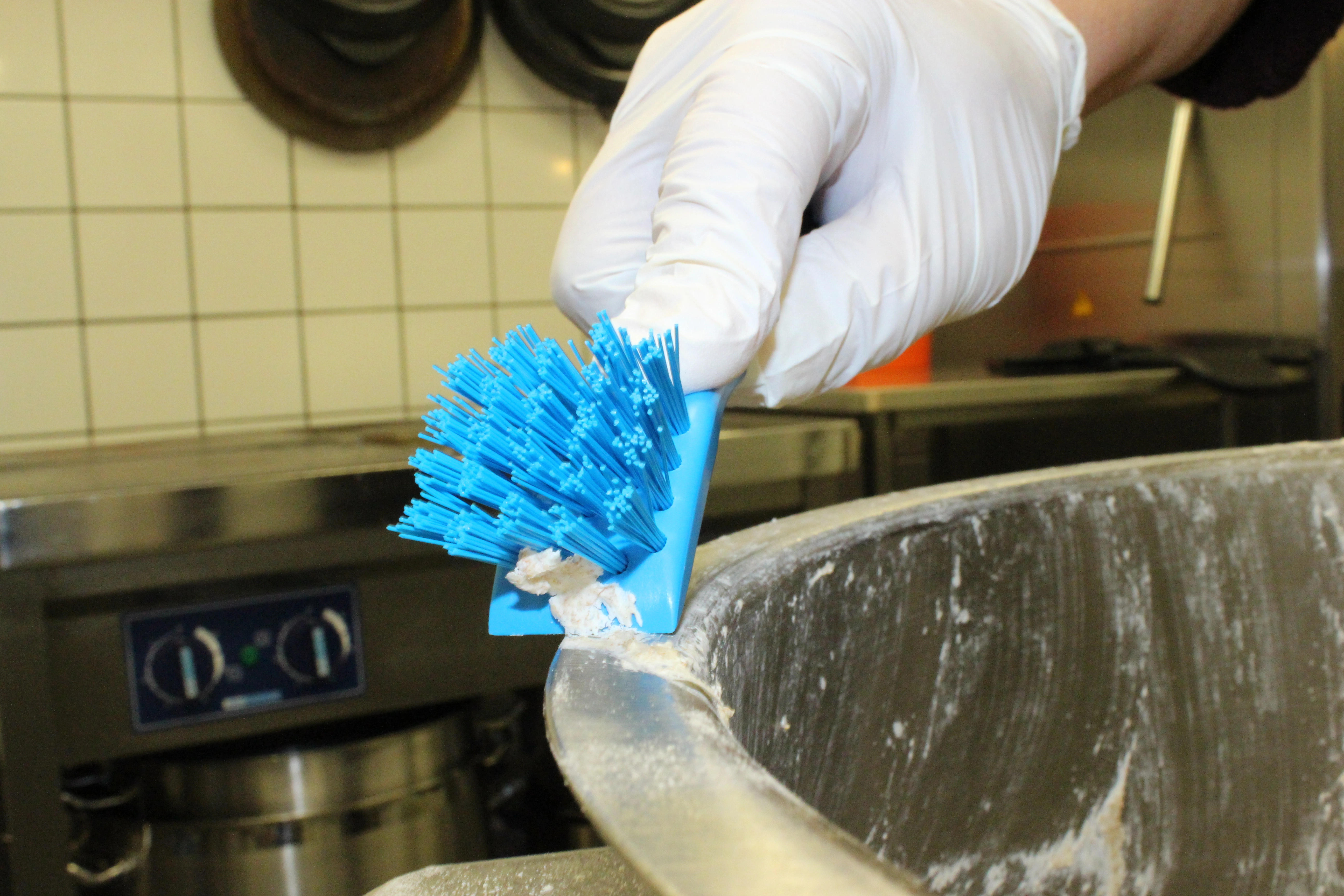 Harte Borsten sind dicker - perfekt zum Schrubben und Entfernen von hartnäckigen Verschmutzungen wie Fettablagerungen, Ölen, getrocknetem Teig oder Biofilmen beim Waschen mit Reinigungslösung