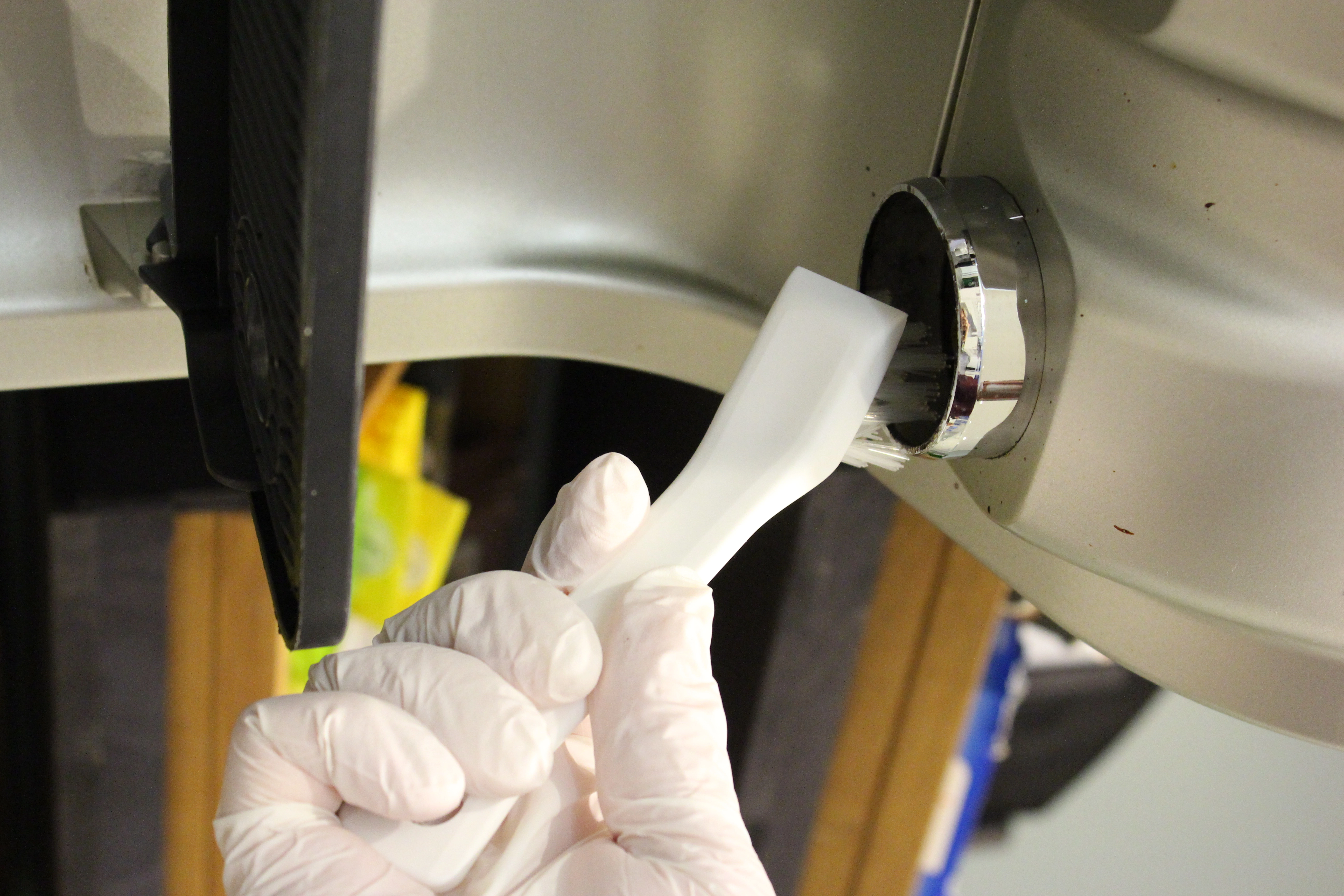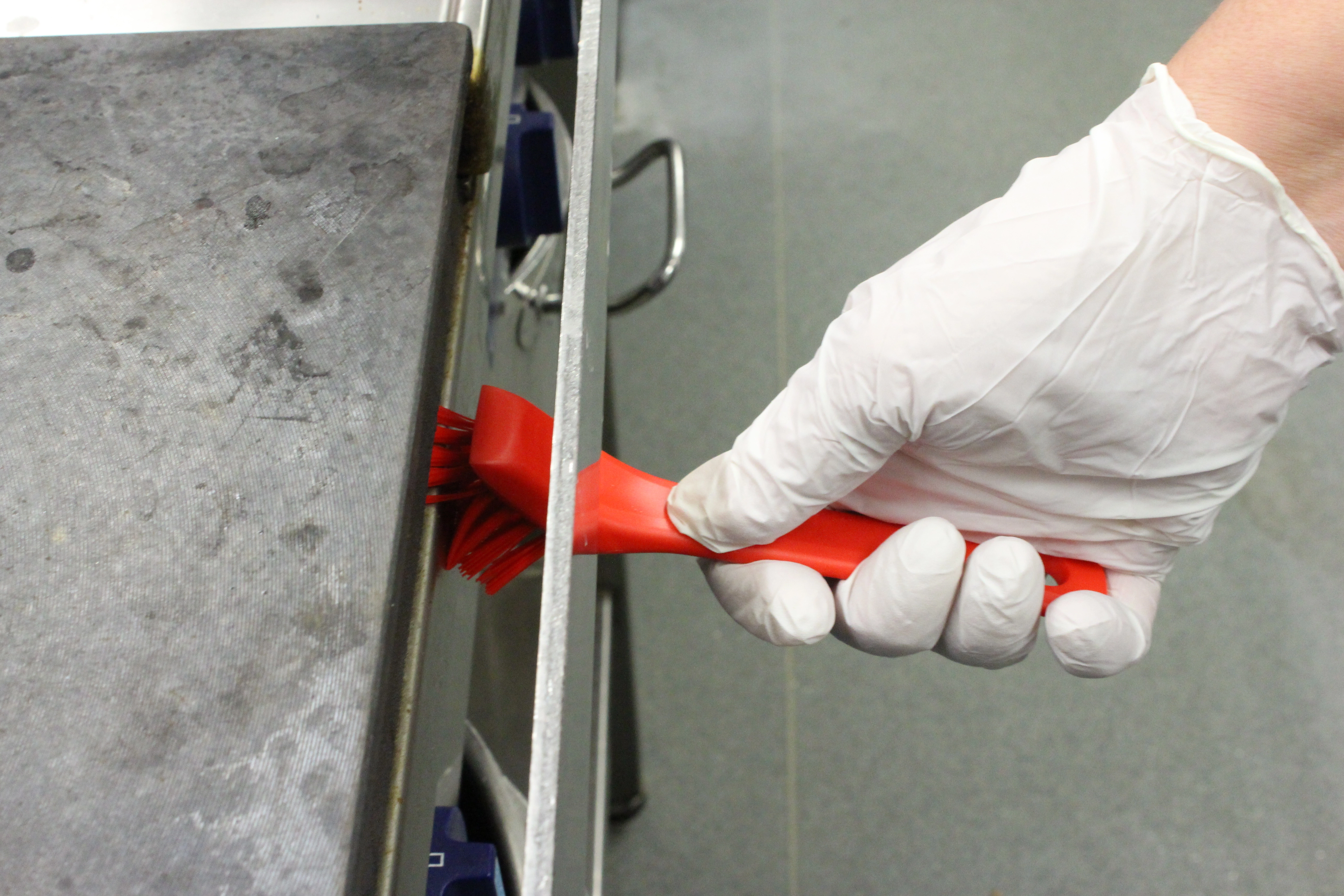 Die Schabkante löst festsitzende Verschmutzungen