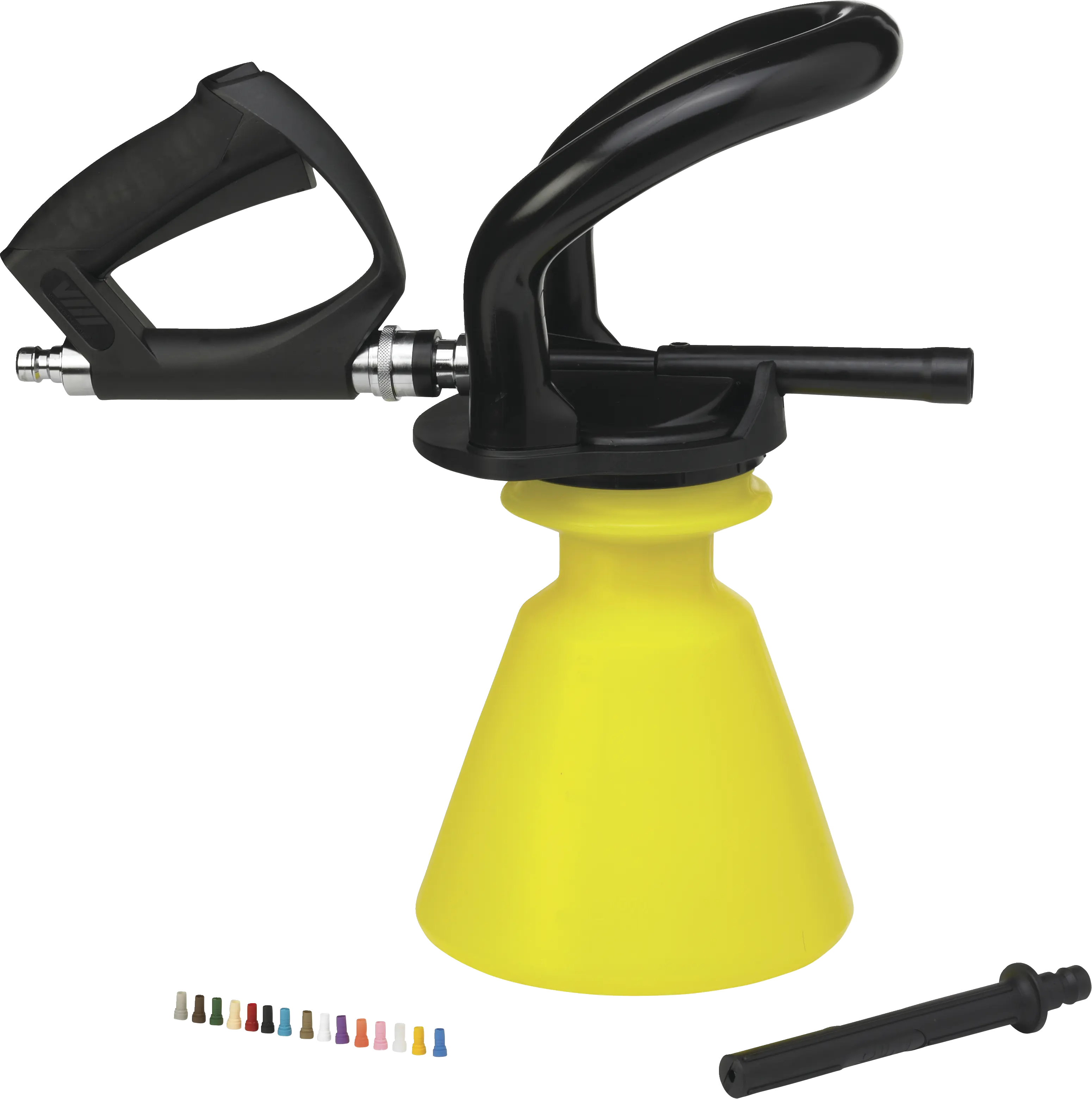 Es ist für einen Druck von 8 bar ausgelegt und hat einen ergonomischen Griff, der auch bei Nässe nicht rutscht.