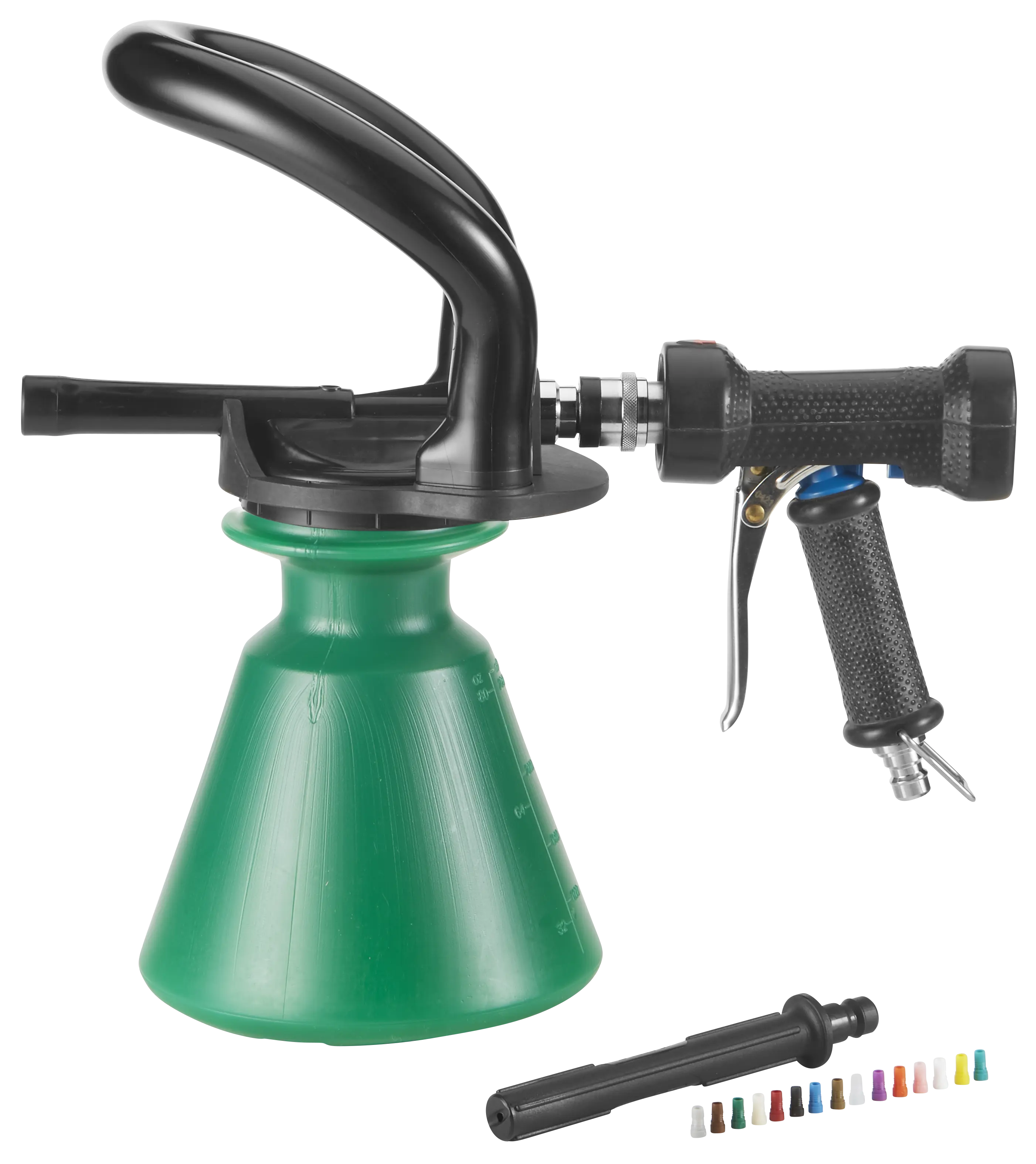 Jede Version ist in 5 Farben erhältlich und verfügt über einen Satz von 15 farbcodierten Düsen für unterschiedliche Chemikalienkonzentrationen.