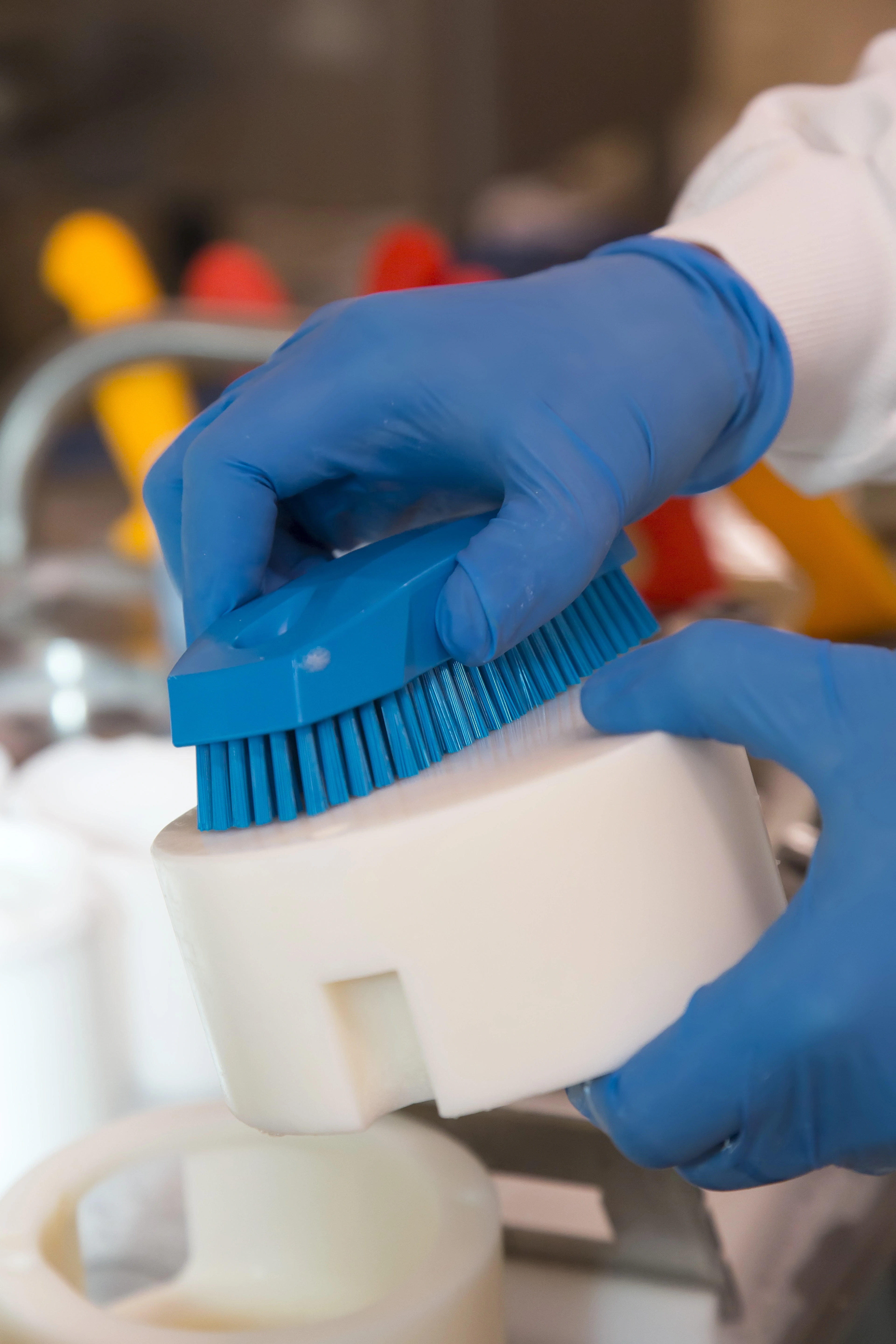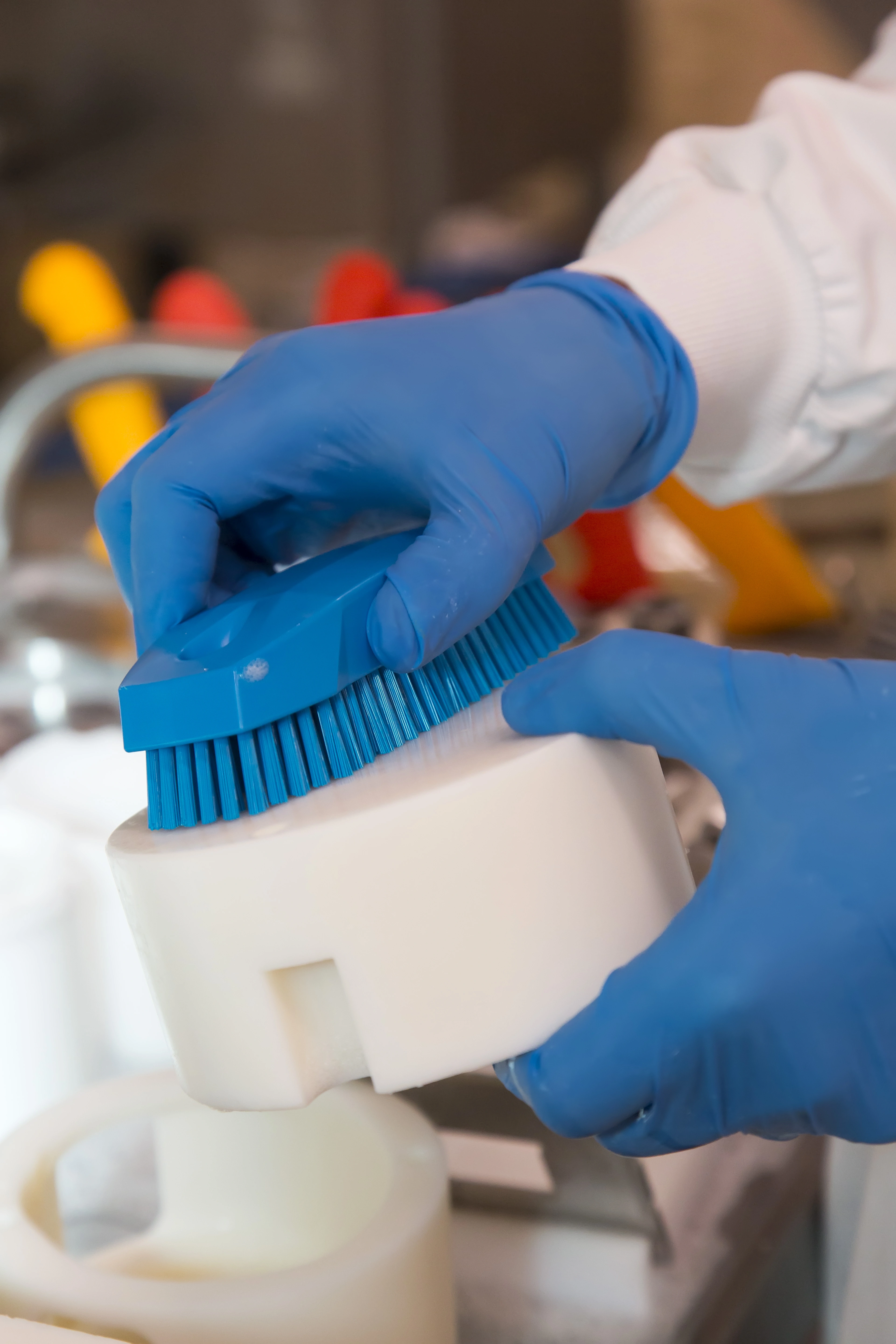 Børsteblokken har formstøbte greb, der gør den lettere at holde fast om, når den er fedtet eller våd