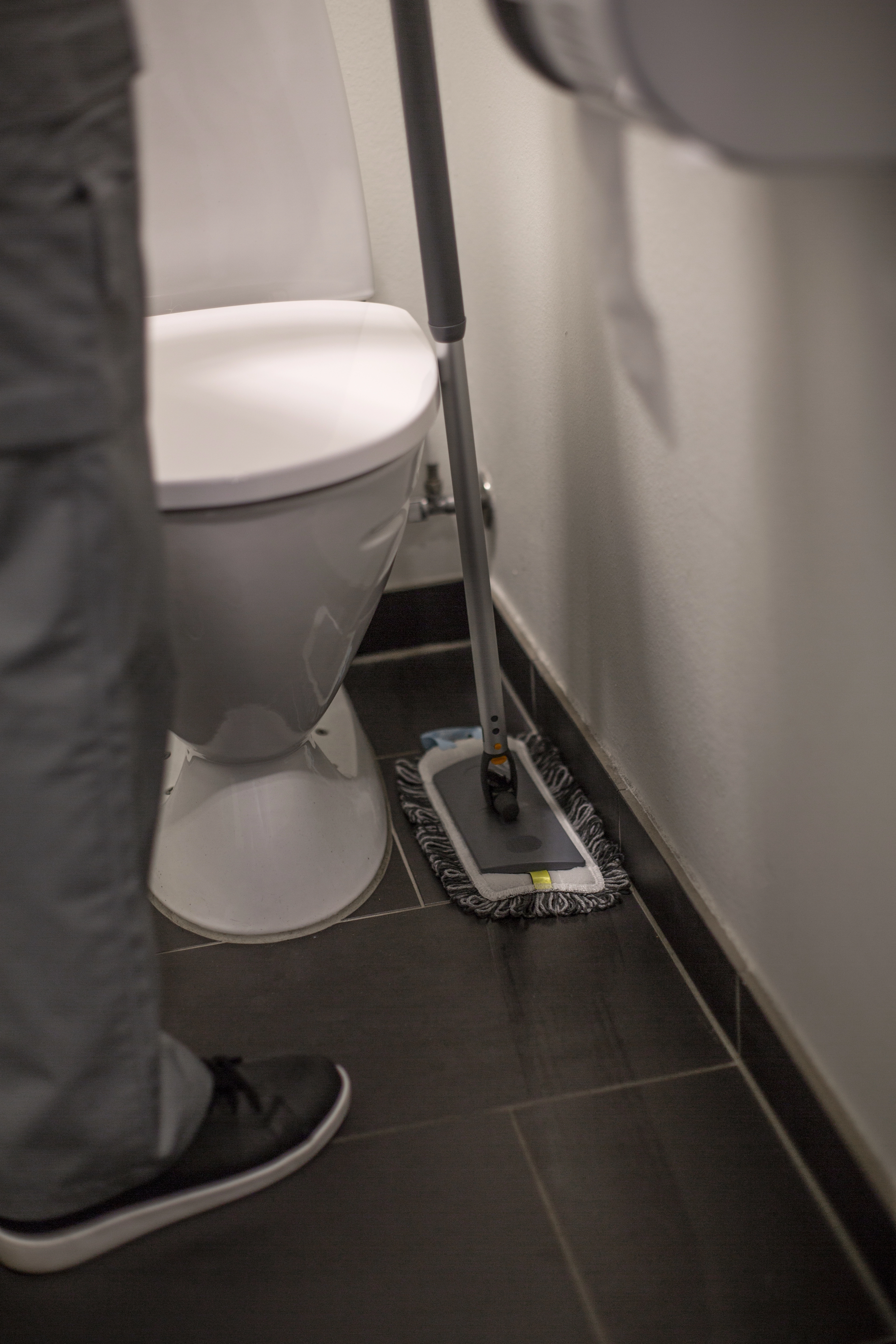 Le support pivote vers l'avant, vers l'arrière et d'un côté à l'autre, ce qui permet à la frange de rester en contact permanent avec la surface à nettoyer
