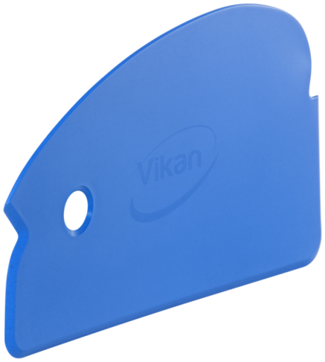 This flexible three-sided hand scraper is ideal for cleaning workbenches and conveyor belts, as well as emptying containers and buckets. It is made from metal-detectable material, which can be tested with Vikan test kit, product no. 11113 prior to use.