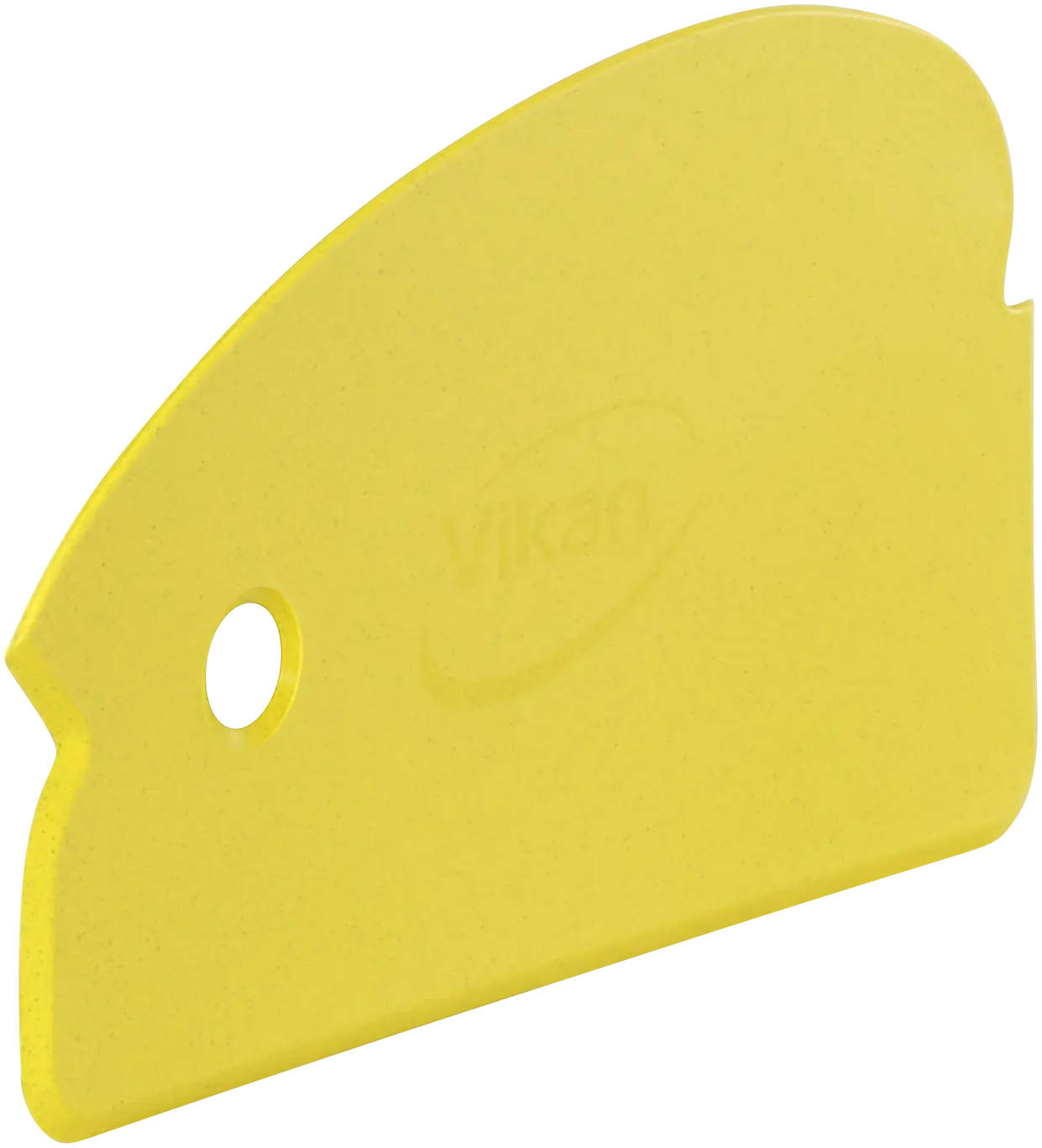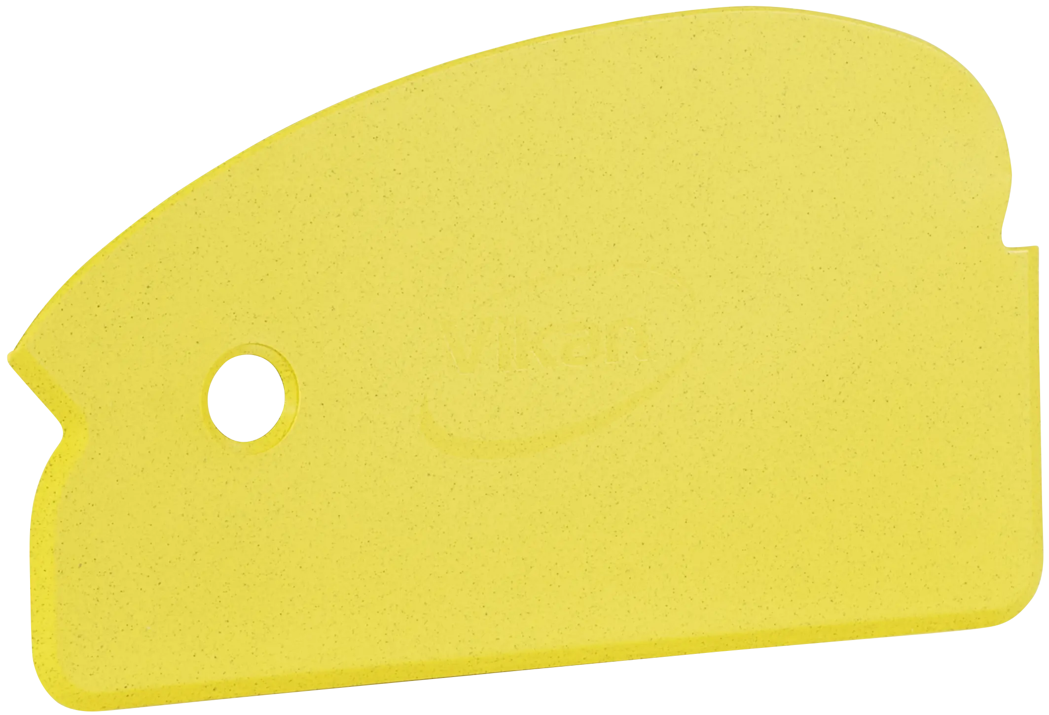 Bevelled scraping edge helps dislodge dried on materials