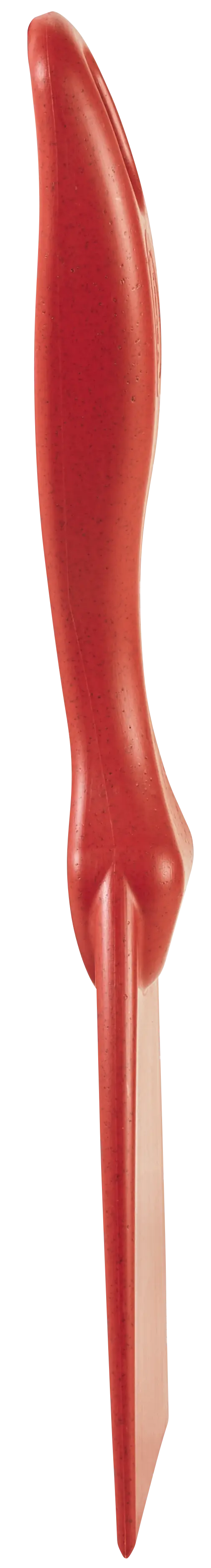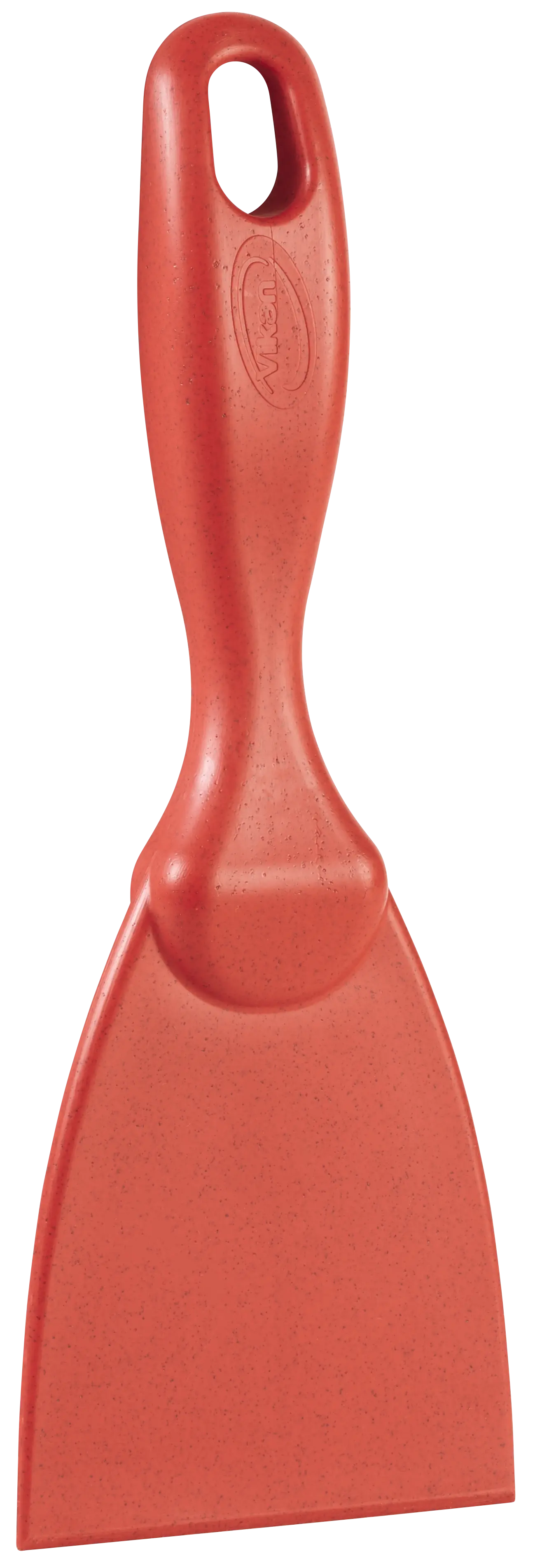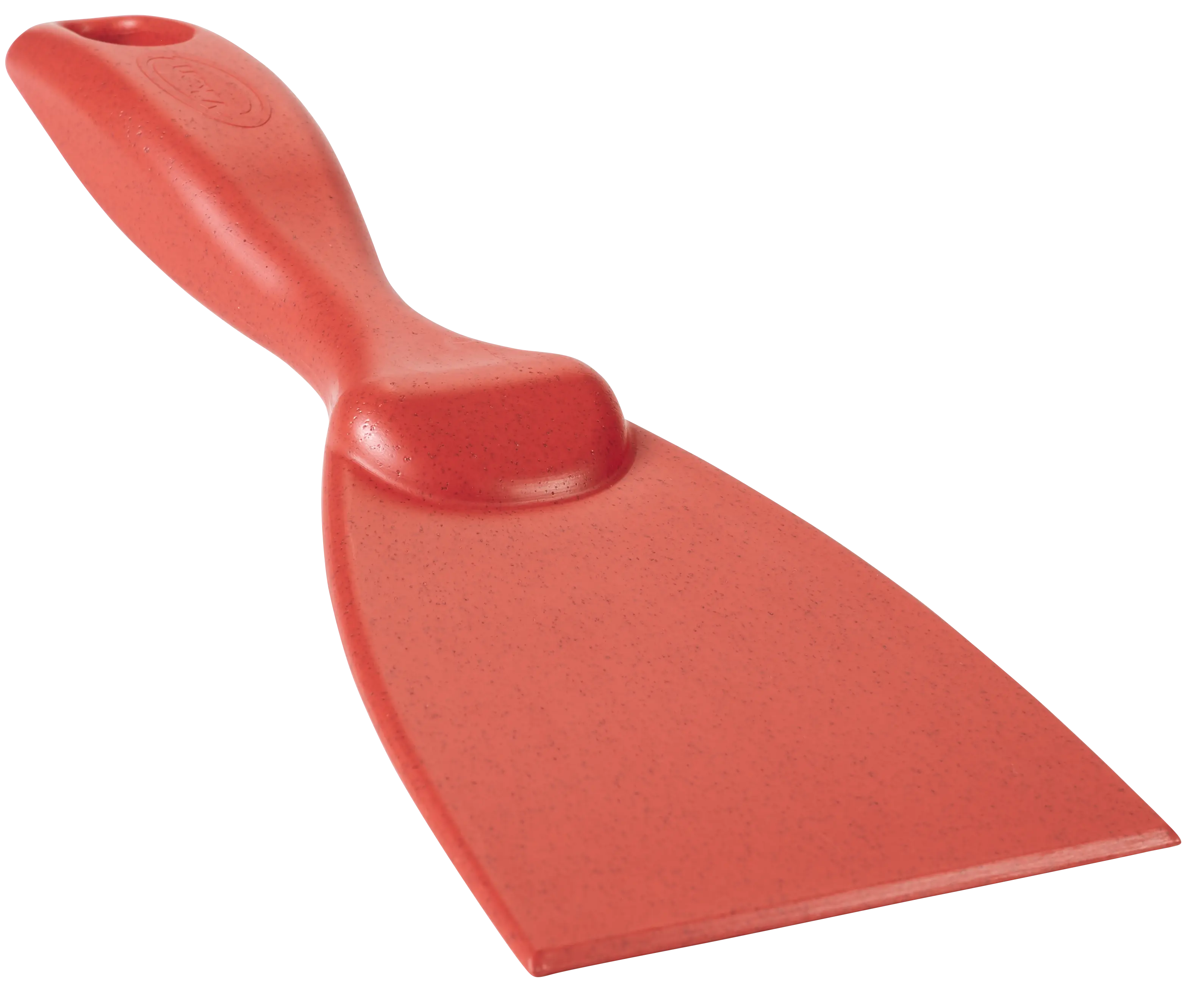 Bevelled scraping edge helps dislodge dried on materials
