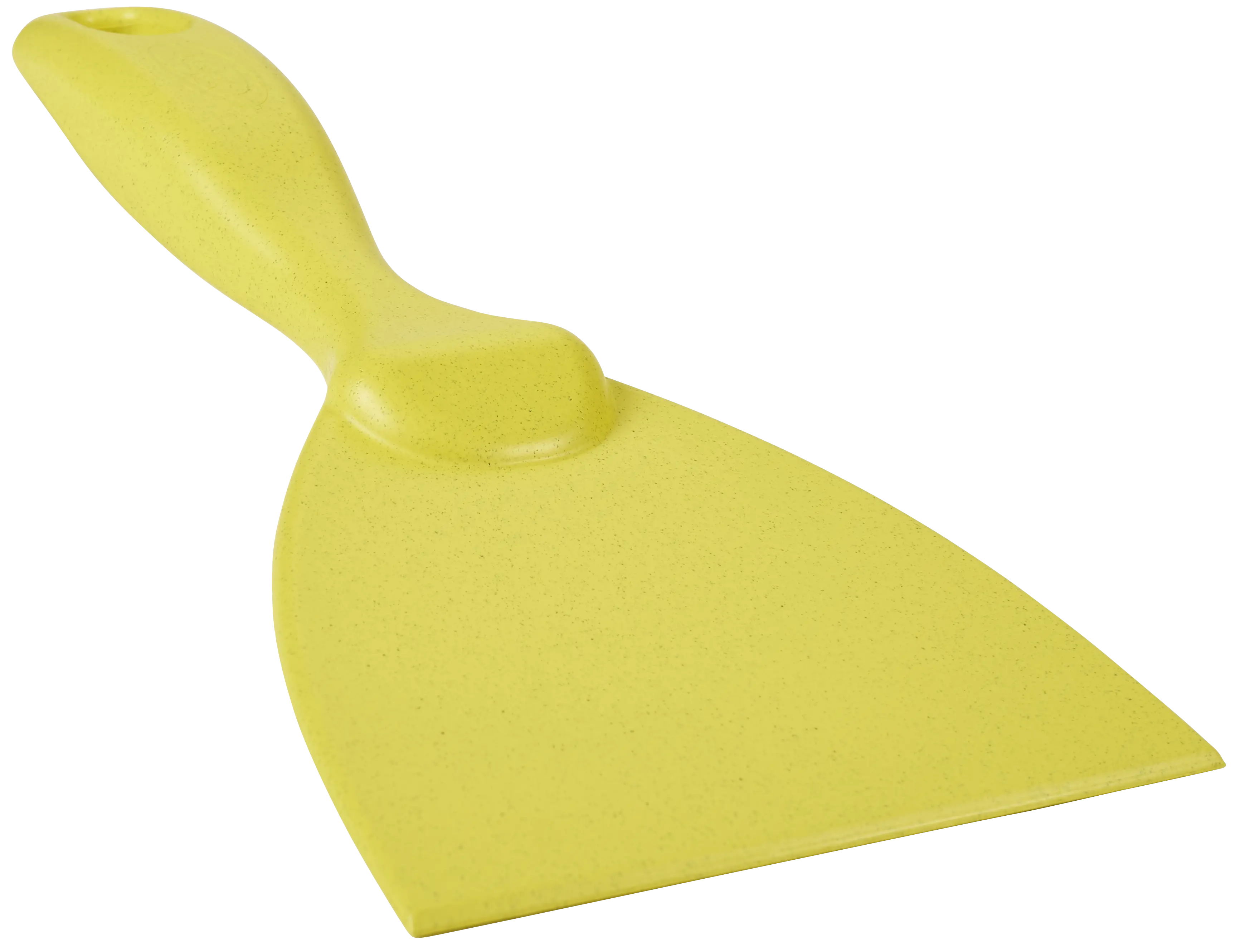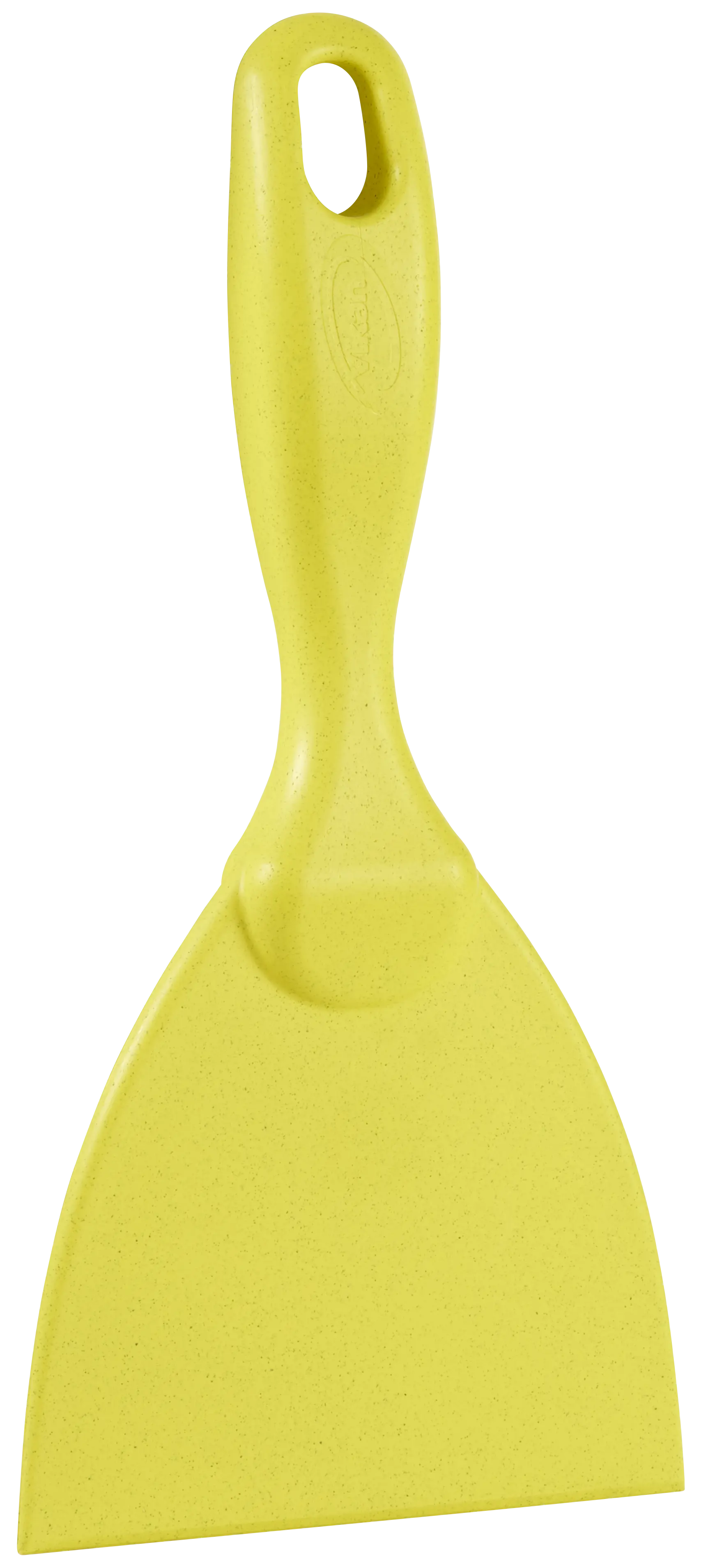 Bevelled scraping edge helps dislodge dried on materials