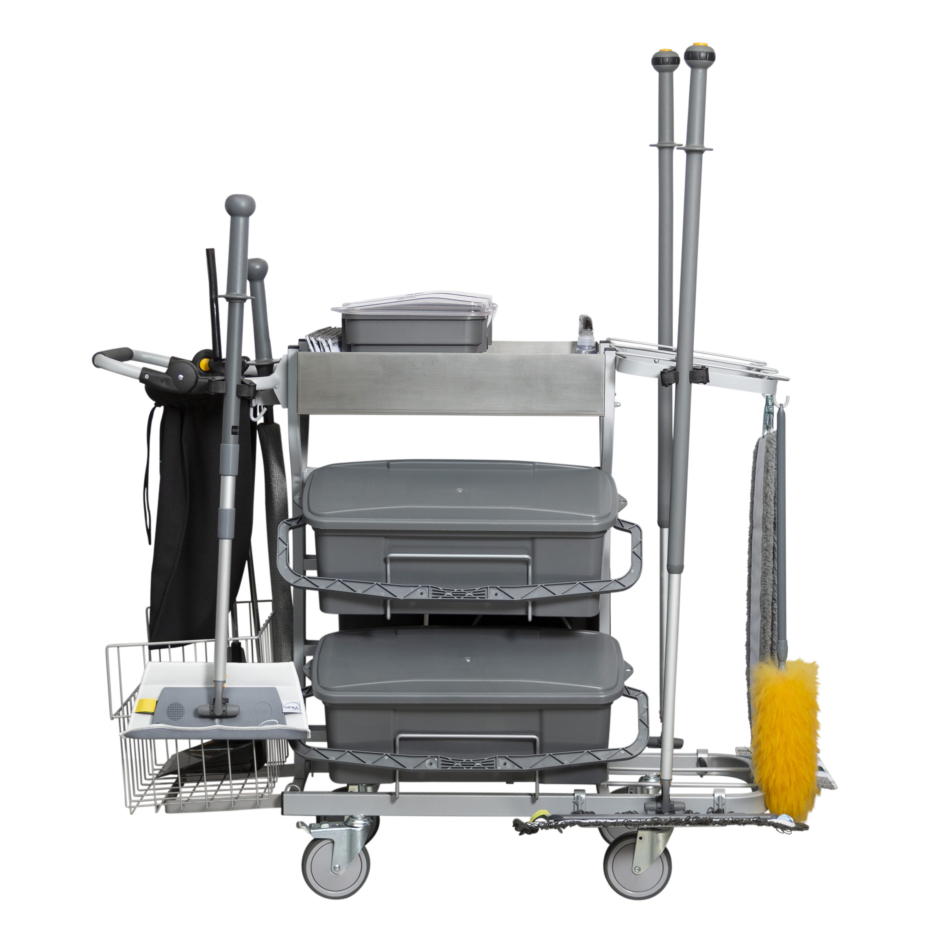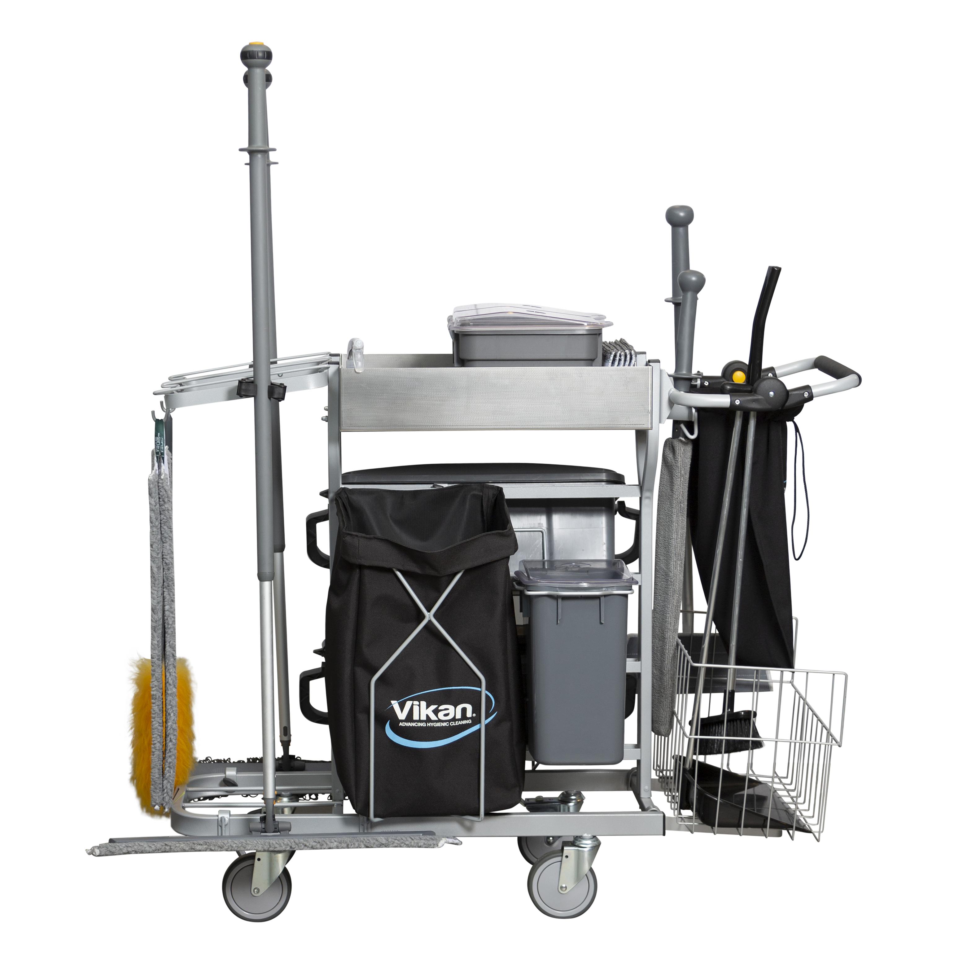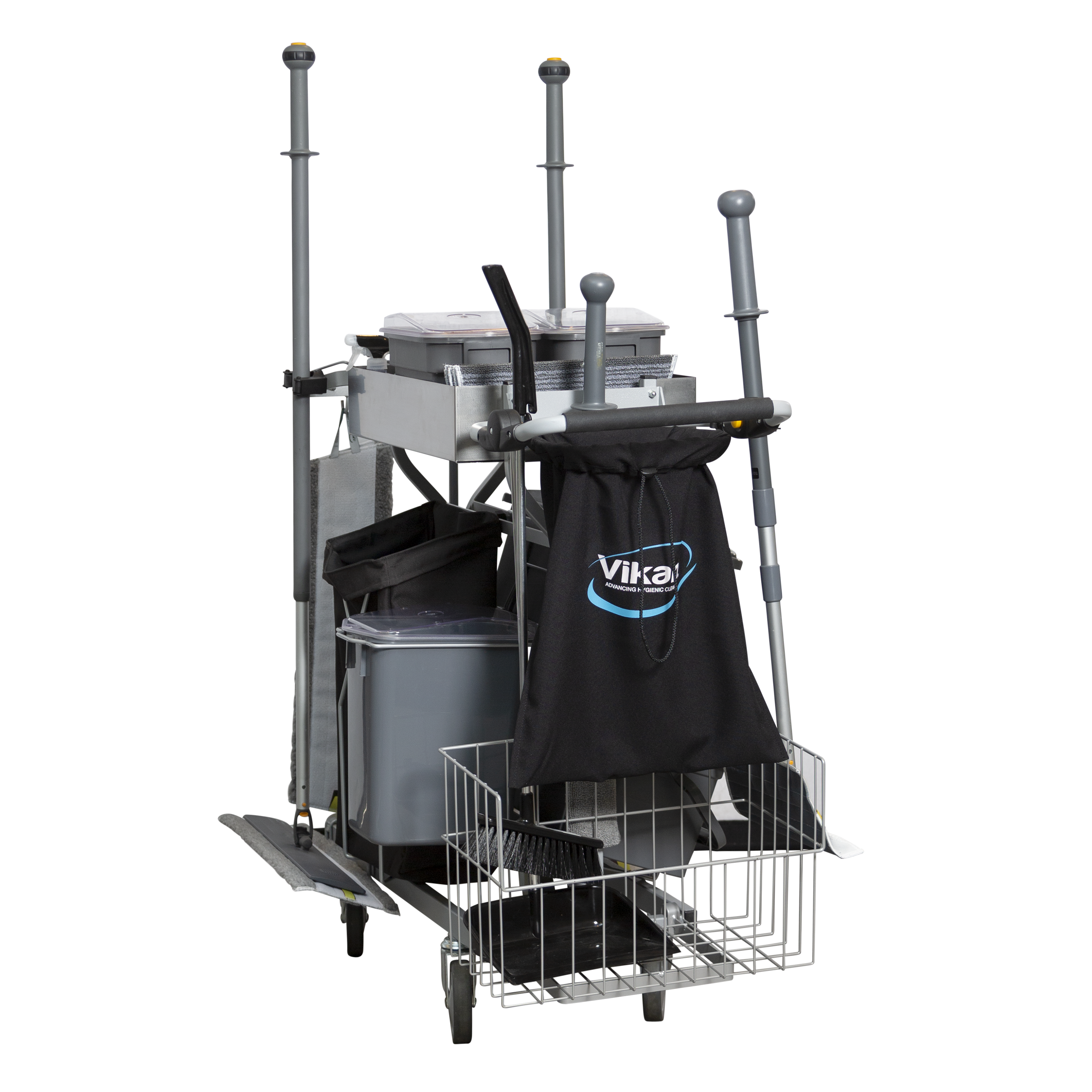 Navet i Vikans nya erbjudande är ett system av ergonomiskt utformade, specialdesignade mikrofibermoppar och andra redskap, placerade på rengöringsvagnar som är förkonfigurerade för specifika tillämpningar, exempelvis trappor, stora kontor, toaletter eller annat.