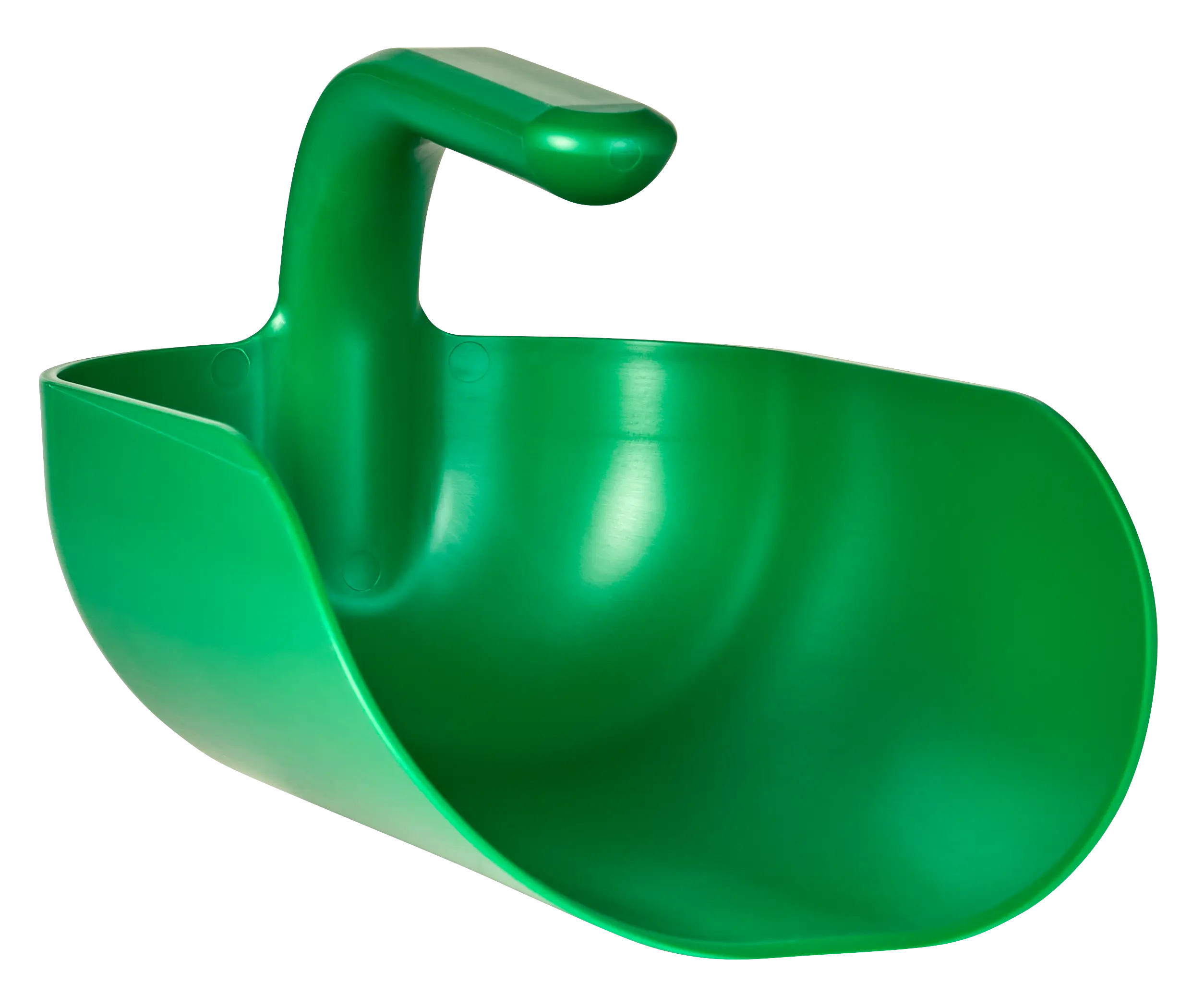 The grip design enables the user to hang the scoop on the side of a bucket or container