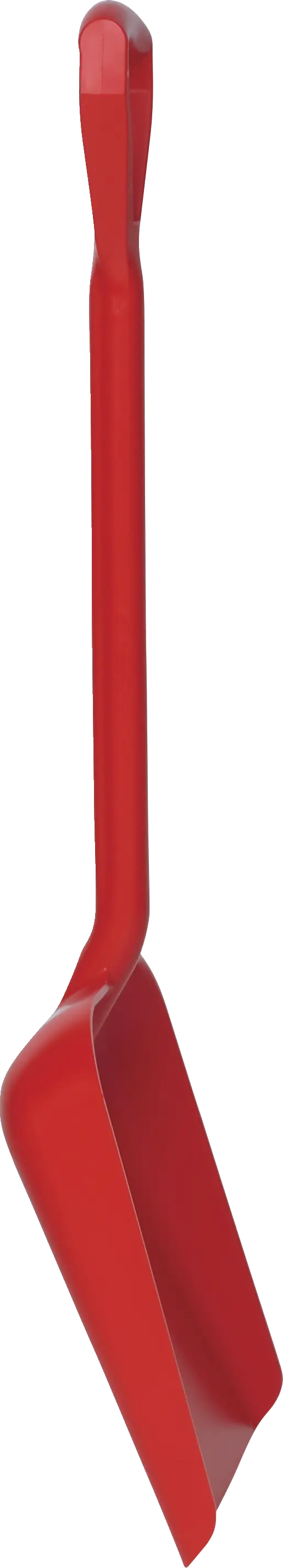 Large, flat shovel pan efficiently moves bulk materials, ingredients, and waste