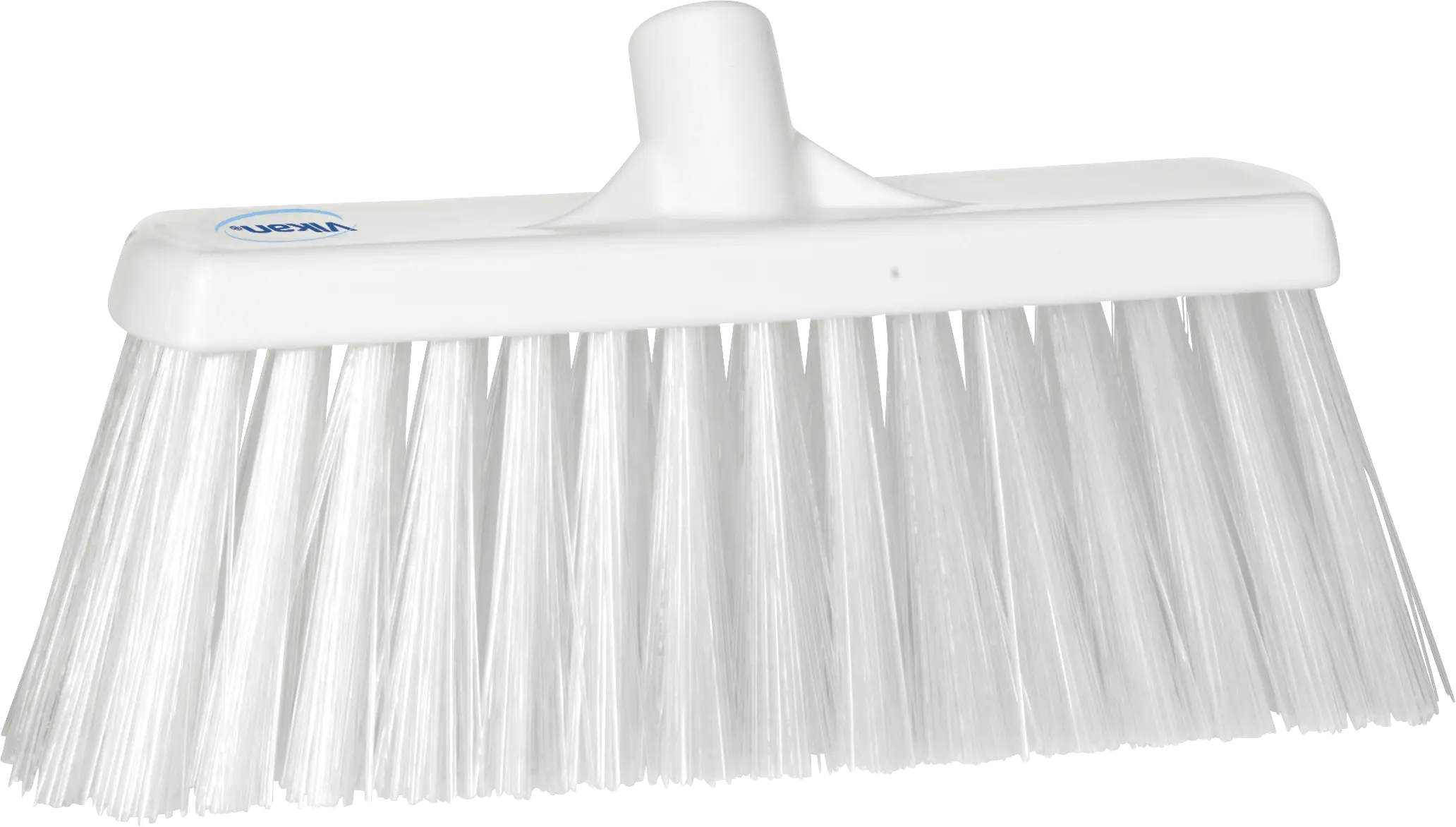 Narrower broom head allows for greater access to confined areas under and between equipment