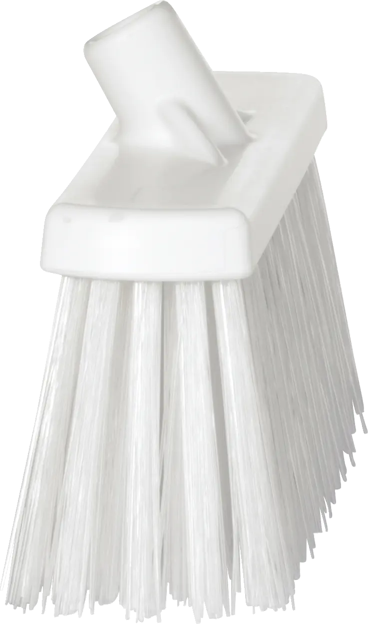 Very hard bristles loosen stubborn soils and collect large debris like vegetable pieces or meat trimmings