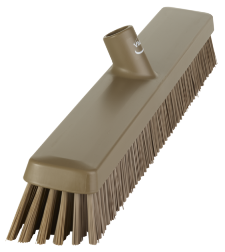 Designed from US food and beverage manufacturer feedback, the Heavy-Duty Push Broom has key features that those with large areas to clean will love. The broom head is heavier, making it easier to maintain contact with the floor during sweeping. The angle cut of the bristles also helps prevent skipping or hopping during long pushes across production flooring. Flared bristles reach into corners and wall junctions to make cleaning easier and more thorough. With more densely packed stiff and soft bristles to sweep both fine and larger debris, the Heavy-Duty Push Broom will become an indispensable part of your sanitation regimen.