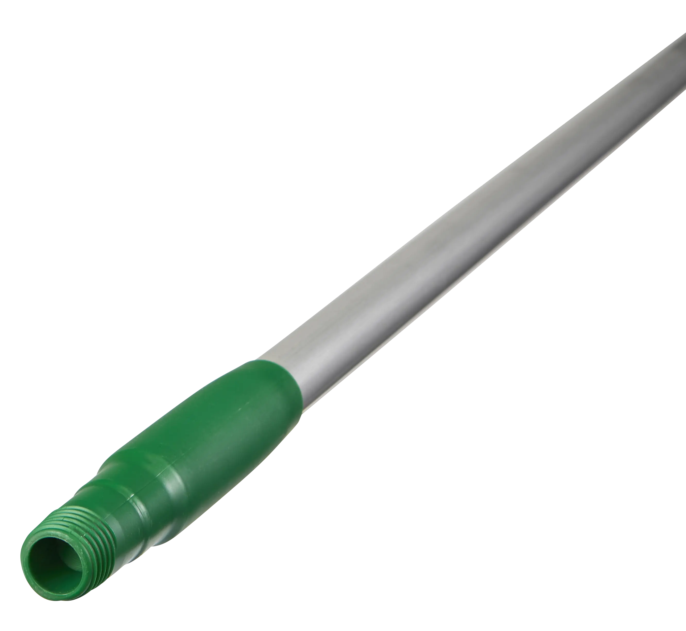 This aluminum handle provides extra length, making it easier for workers to reach more, whether it's behind machinery or on walls. It has Euro threading and attaches to any ColorCore broom, brush, or squeegees.