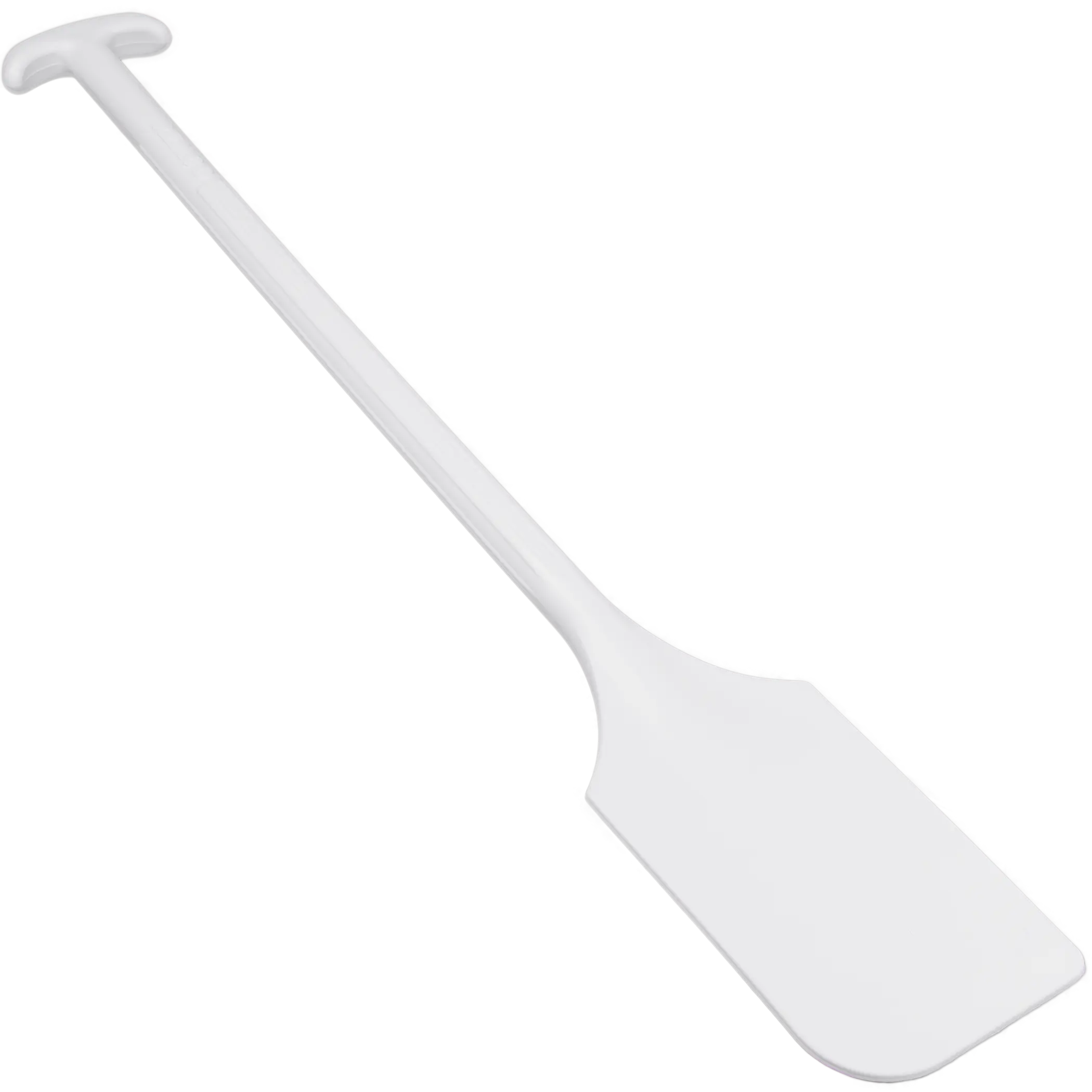 This two-in-one tool is handy for both mixing and scraping, and is great for a variety of applications such as soup, confectionery, dough, and sauce manufacturing as well as many other food processing or other mixing tasks. One-piece construction and the unique long-handle design make it easy to use for many jobs. Plastic is a lightweight alternative to metal mixing paddle scrapers, and will reduce fatigue for the user.