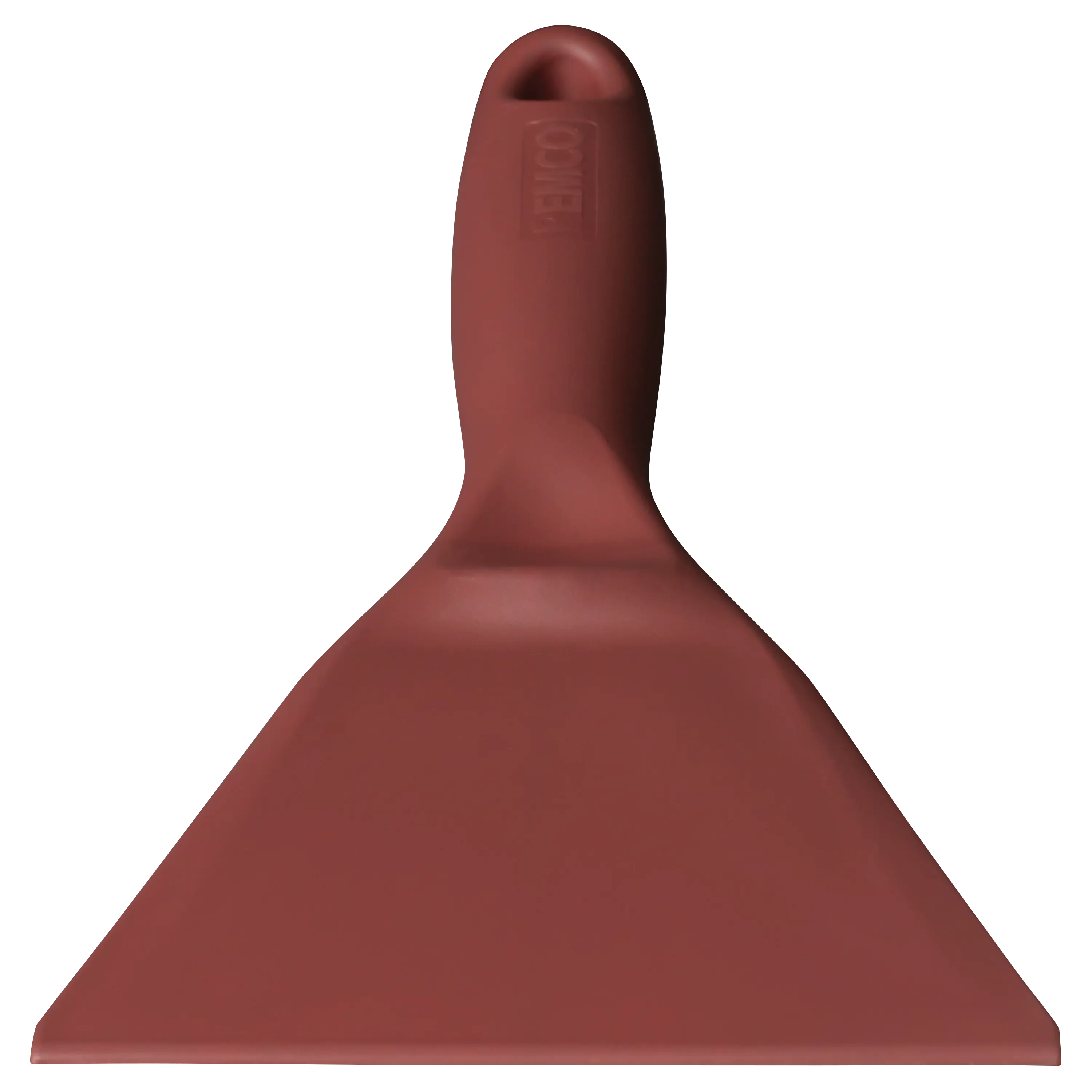 Beveled scraping edge helps dislodge dried on materials