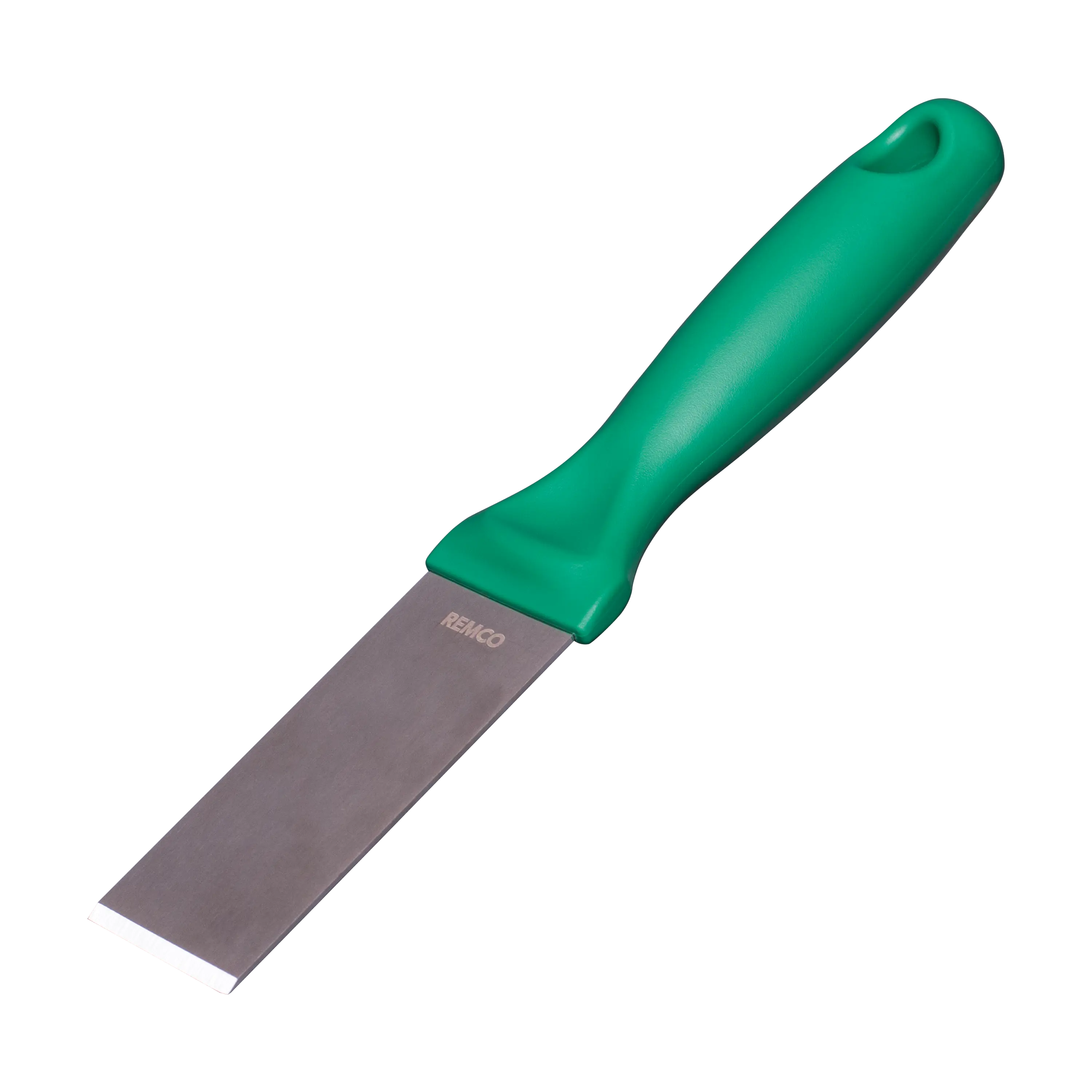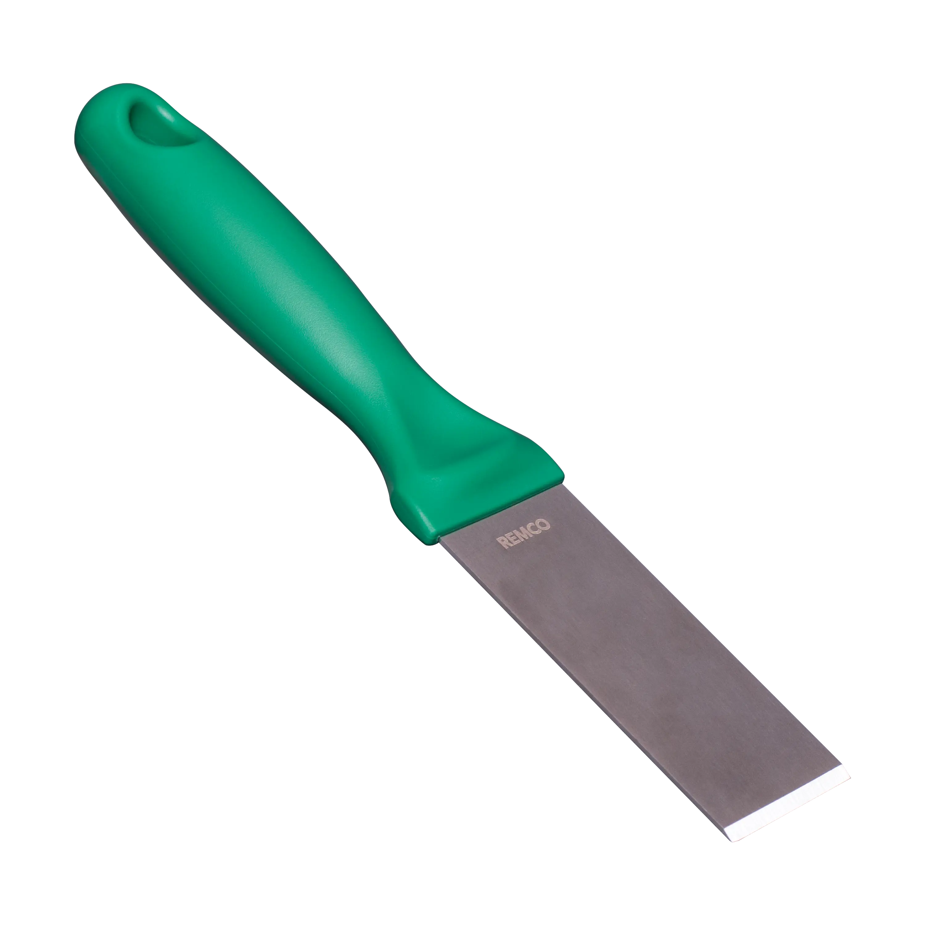 This color-coded stainless steel scraper is an excellent solution for removing stubborn debris from smooth surfaces. The scraper’s beveled blade loosens dried pastry dough, starches, chocolate, and burnt food. The scraper is made entirely of FDA compliant materials, making it safe for food contact. Its ridged blade and ergonomic handle stand up to heavy and repeated use.