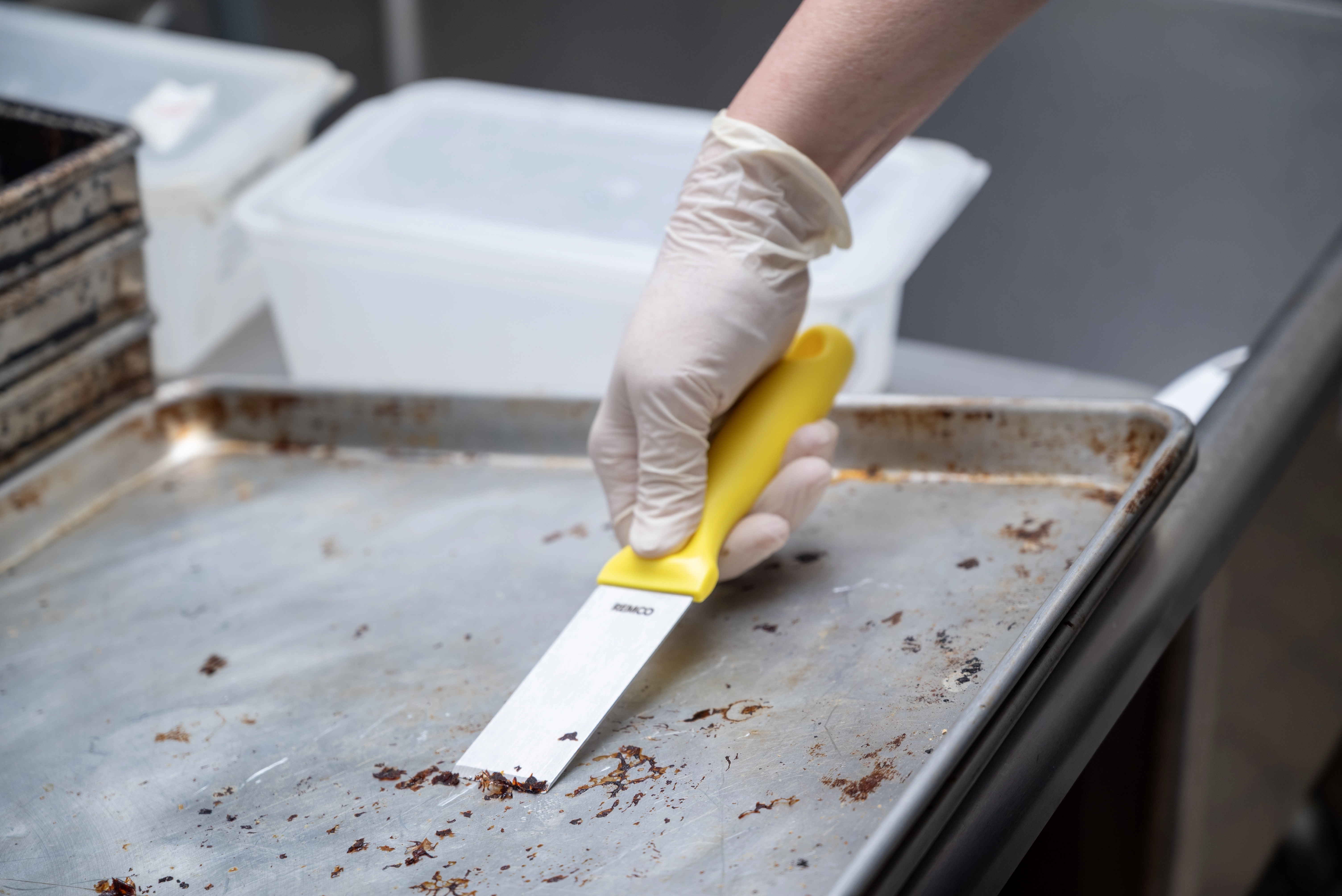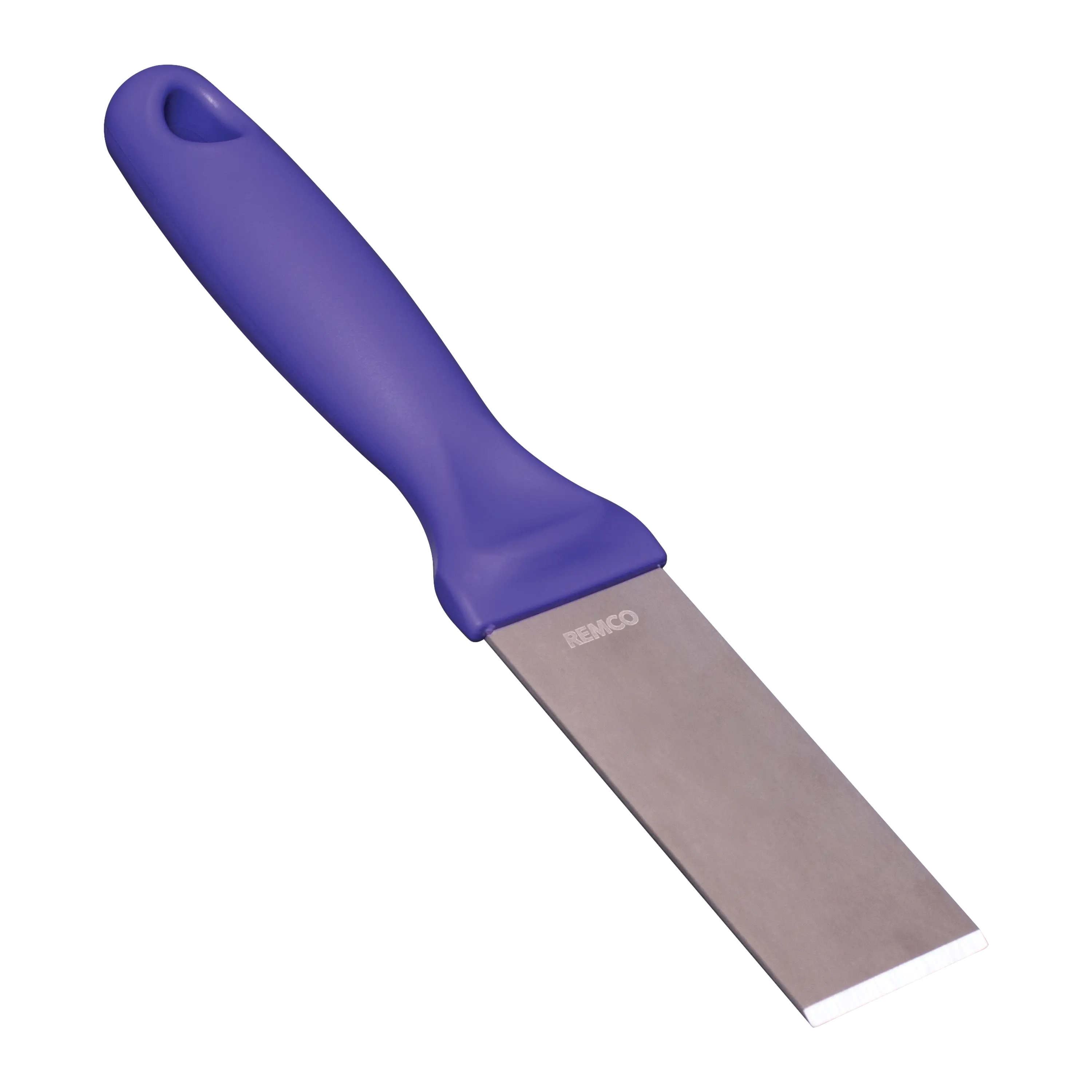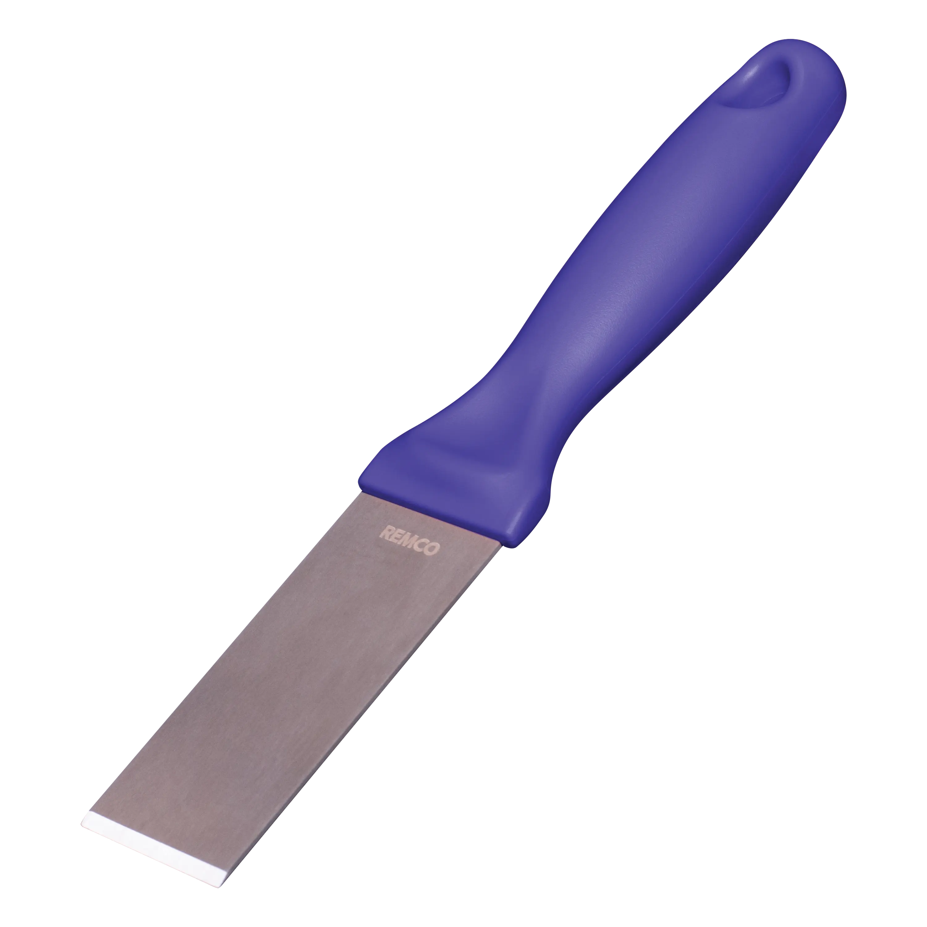 This color-coded stainless steel scraper is an excellent solution for removing stubborn debris from smooth surfaces. The scraper’s beveled blade loosens dried pastry dough, starches, chocolate, and burnt food. The scraper is made entirely of FDA compliant materials, making it safe for food contact. Its ridged blade and ergonomic handle stand up to heavy and repeated use.