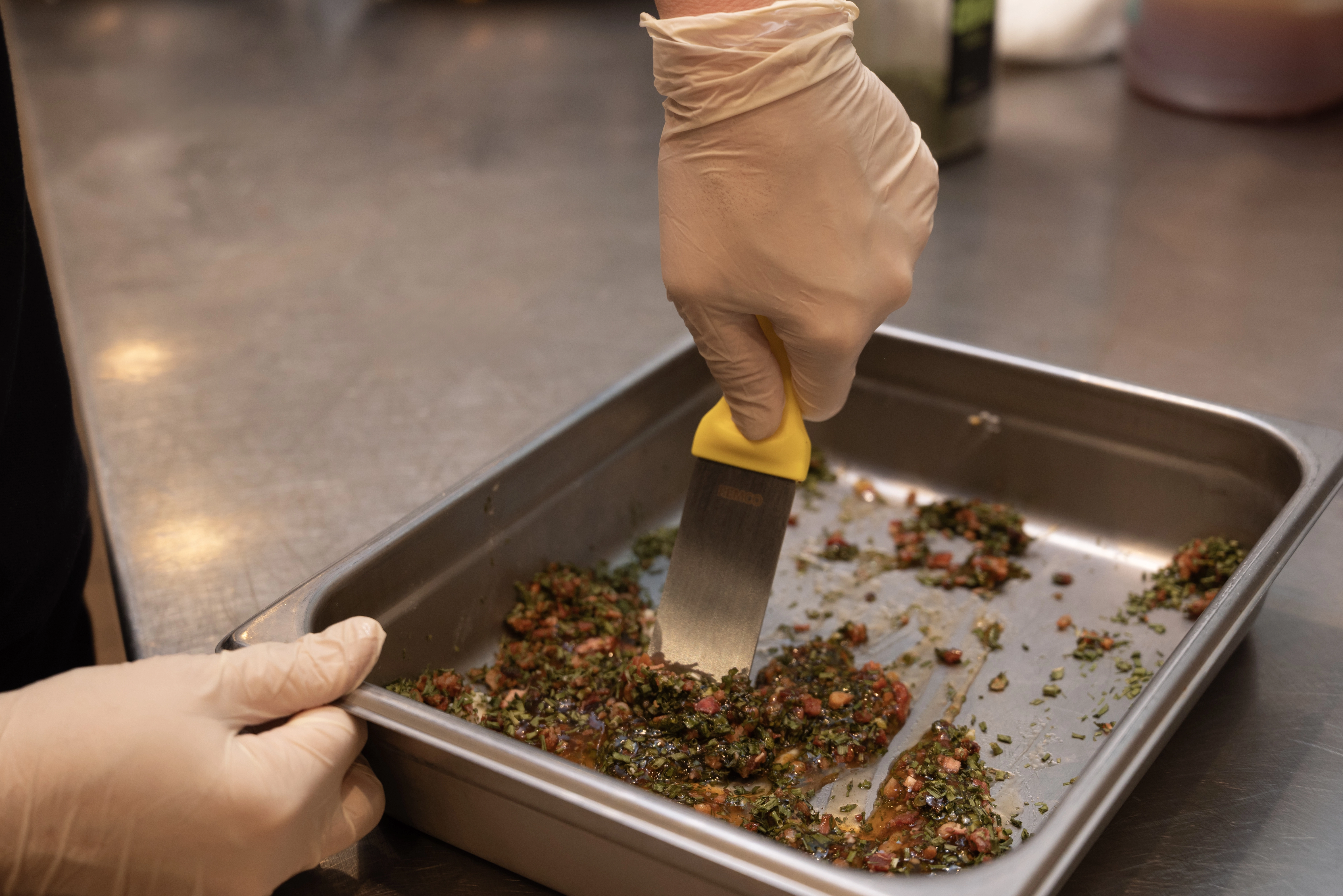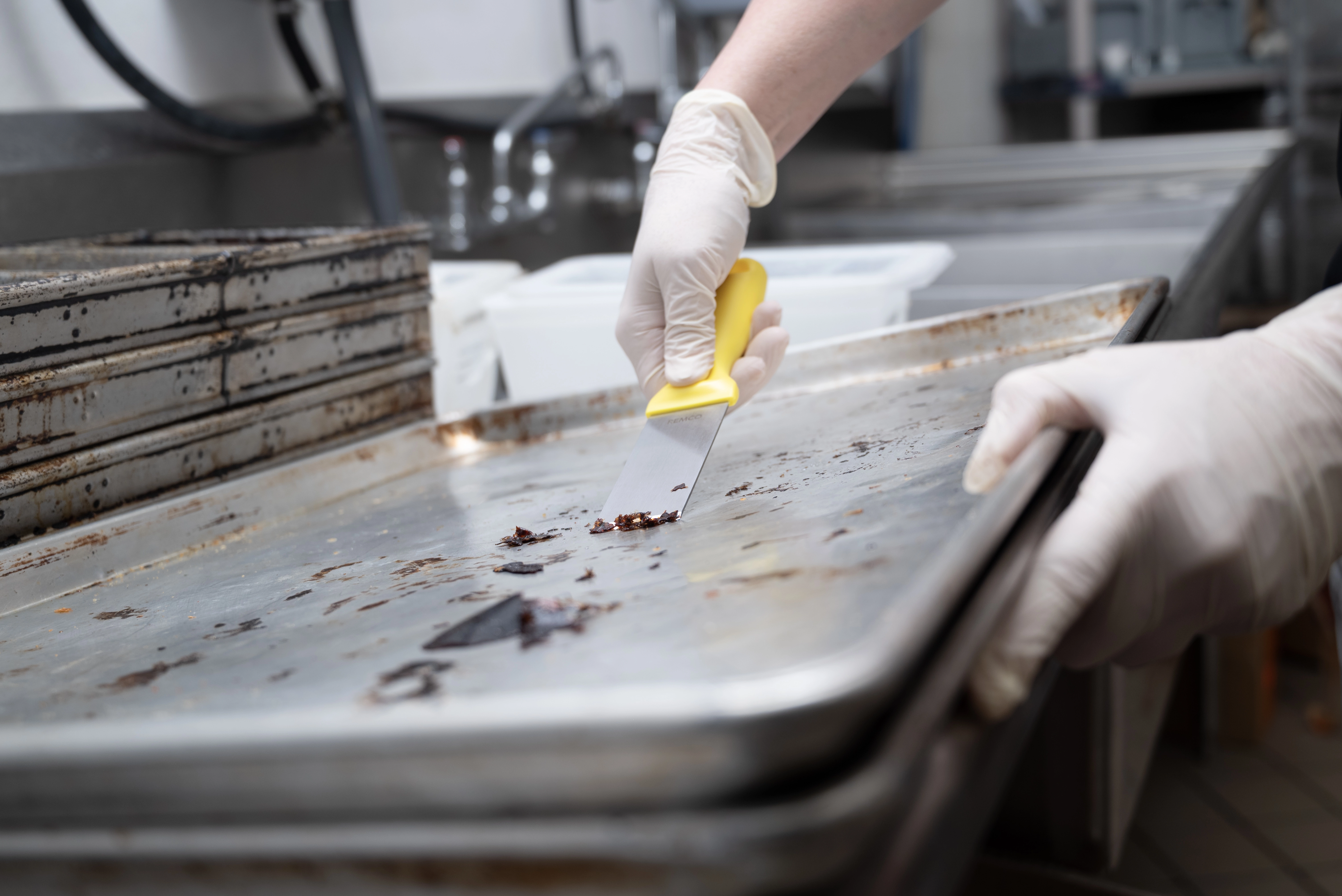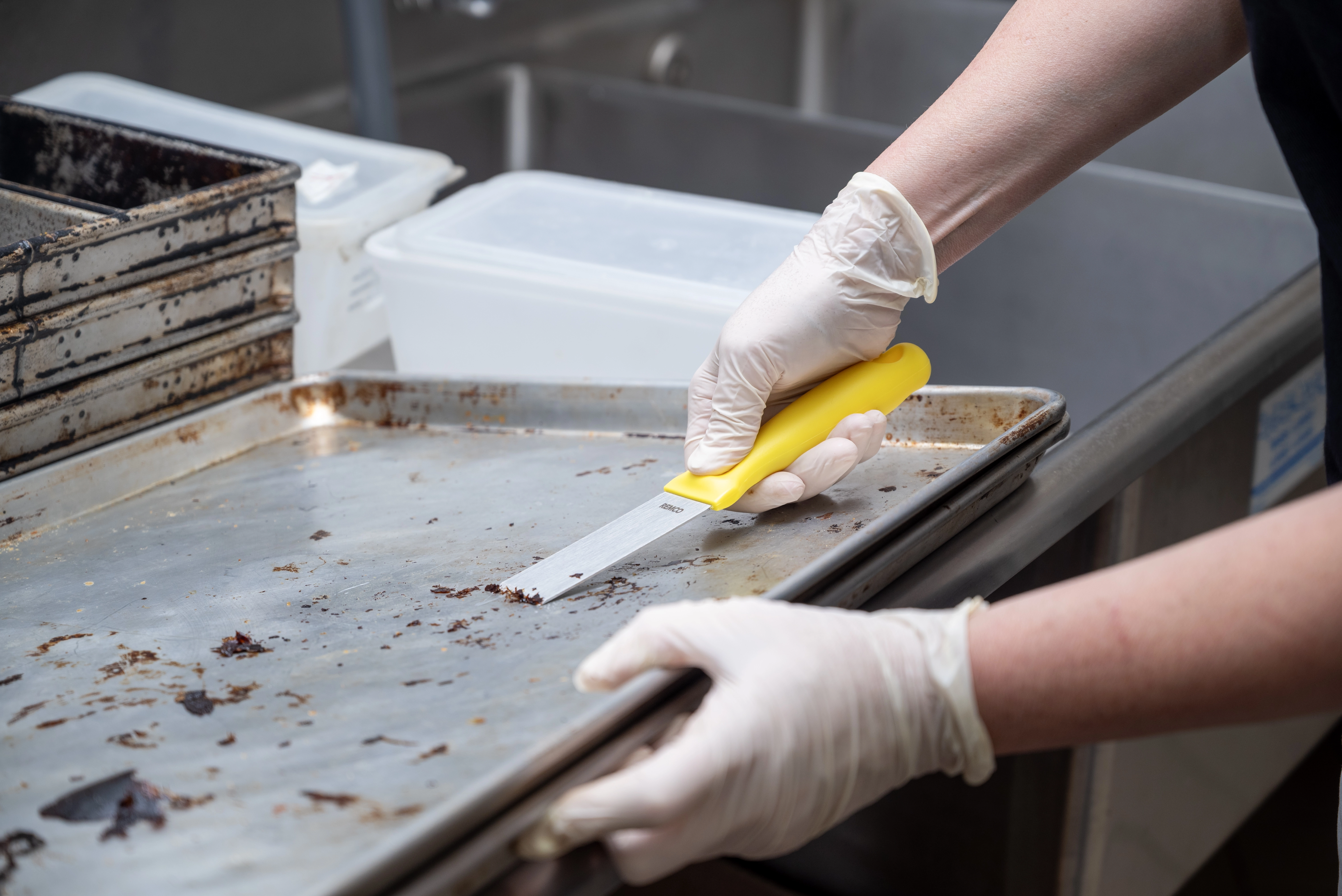 This color-coded stainless steel scraper is an excellent solution for removing stubborn debris from smooth surfaces. The scraper’s beveled blade loosens dried pastry dough, starches, chocolate, and burnt food. The scraper is made entirely of FDA compliant materials, making it safe for food contact. Its ridged blade and ergonomic handle stand up to heavy and repeated use.
