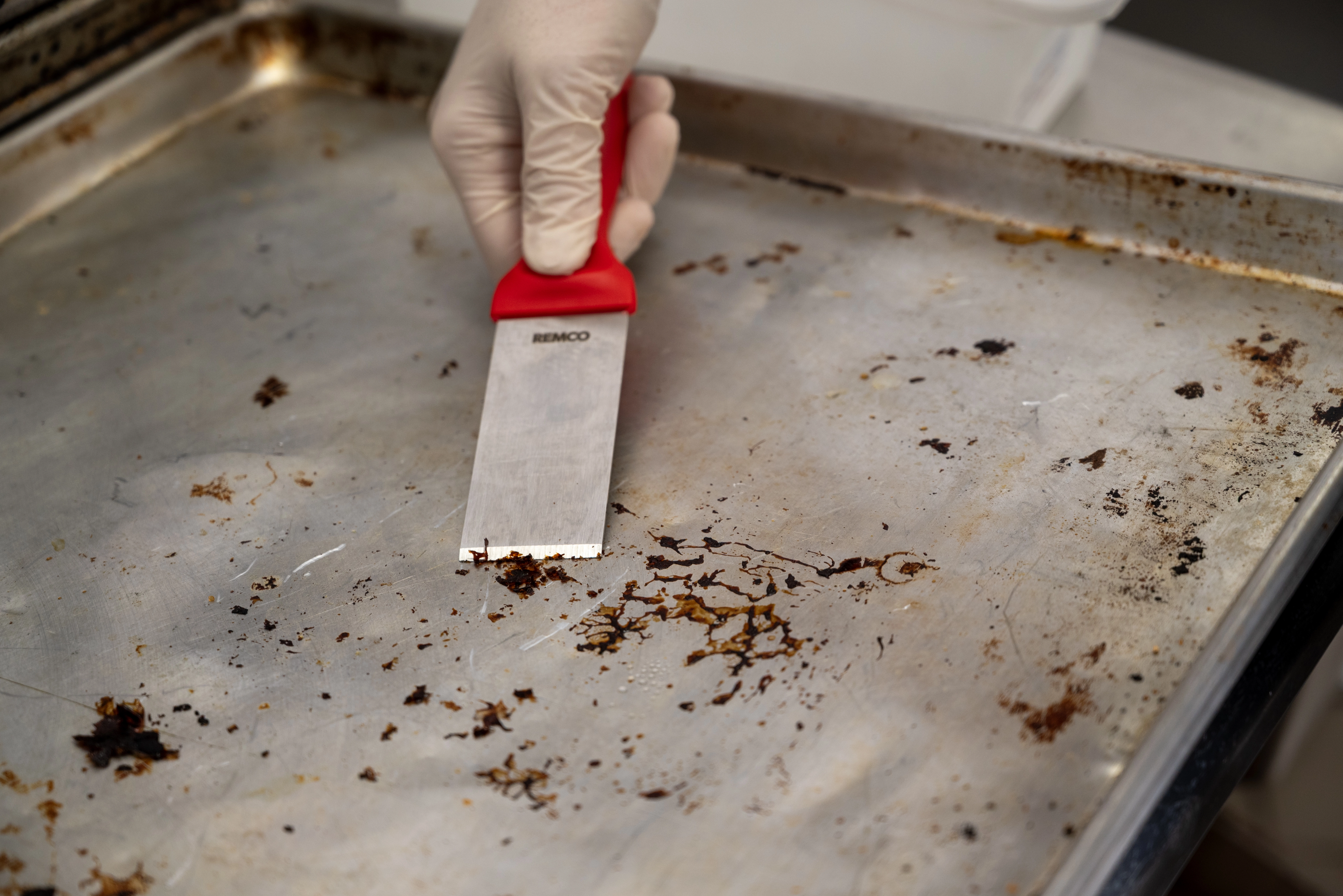 Stainless steel blade for aggressive removal of dried or burnt-on materials