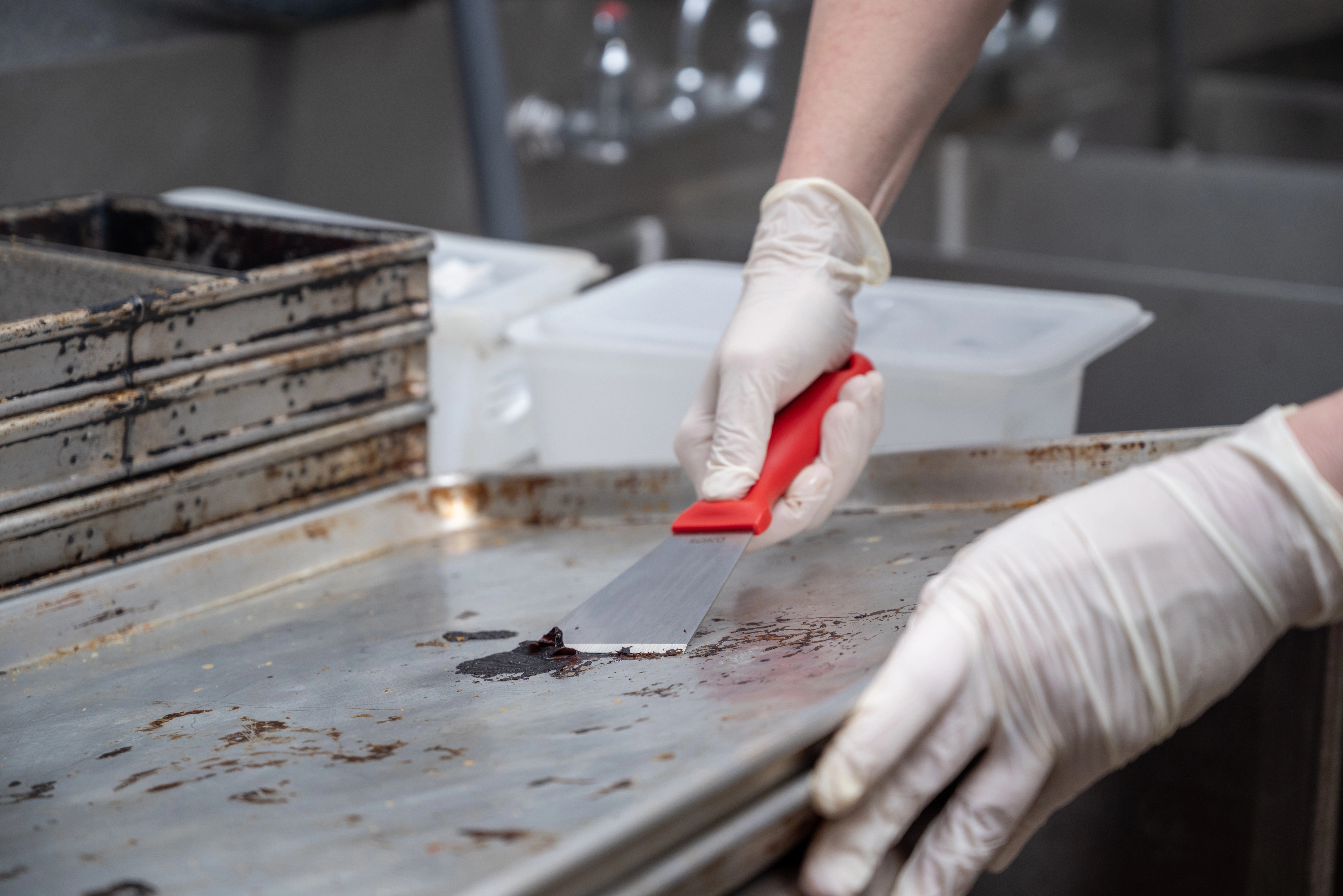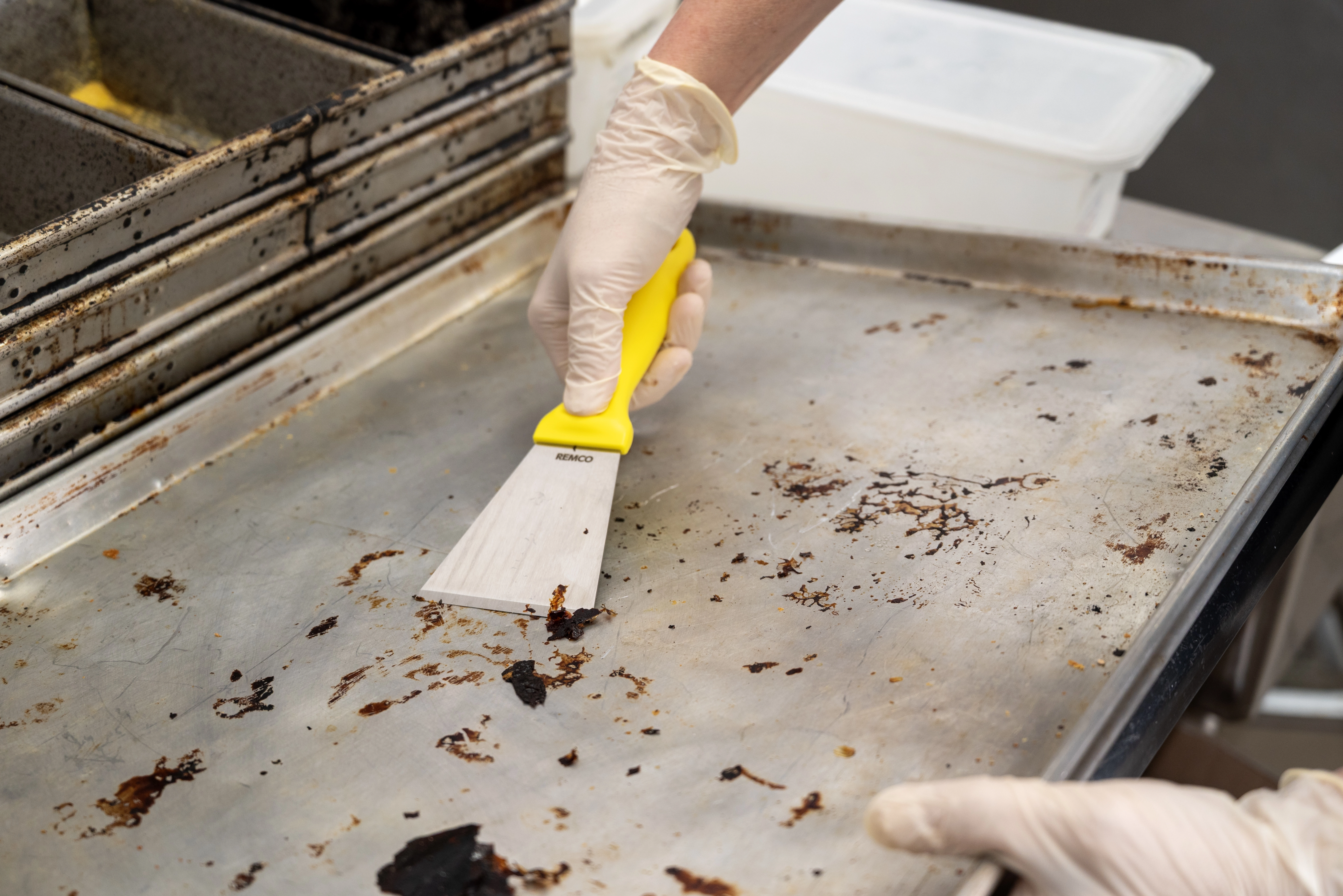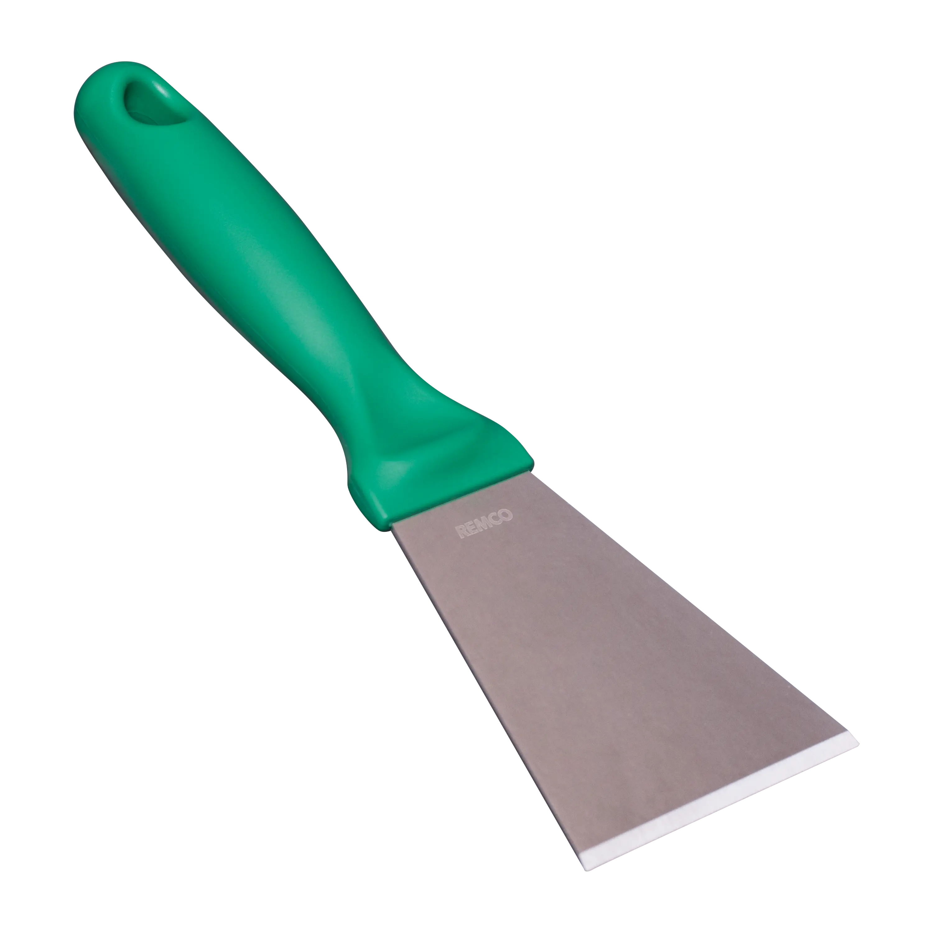 This color-coded stainless steel scraper is an excellent solution for removing stubborn debris from smooth surfaces. The scraper’s beveled blade loosens dried pastry dough, starches, chocolate, and burnt food. The scraper is made entirely of FDA compliant materials, making it safe for food contact. Its ridged blade and ergonomic handle stand up to heavy and repeated use.