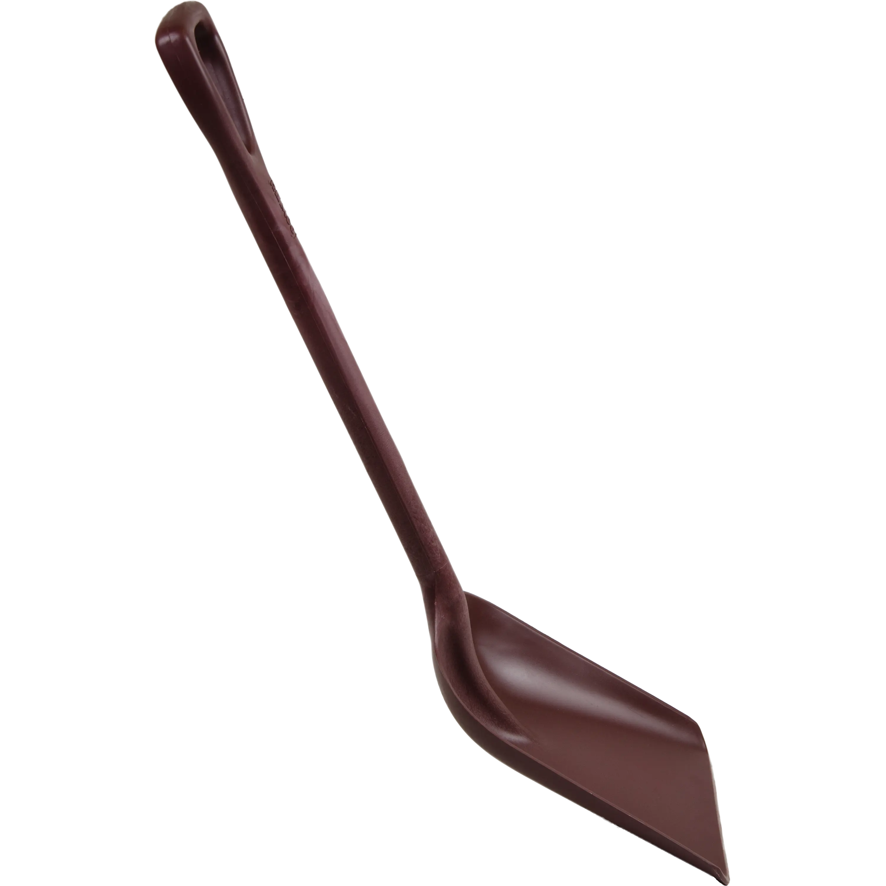 Beveled shovel blade helps scrape away dried-on material and pick up fine, loose debris