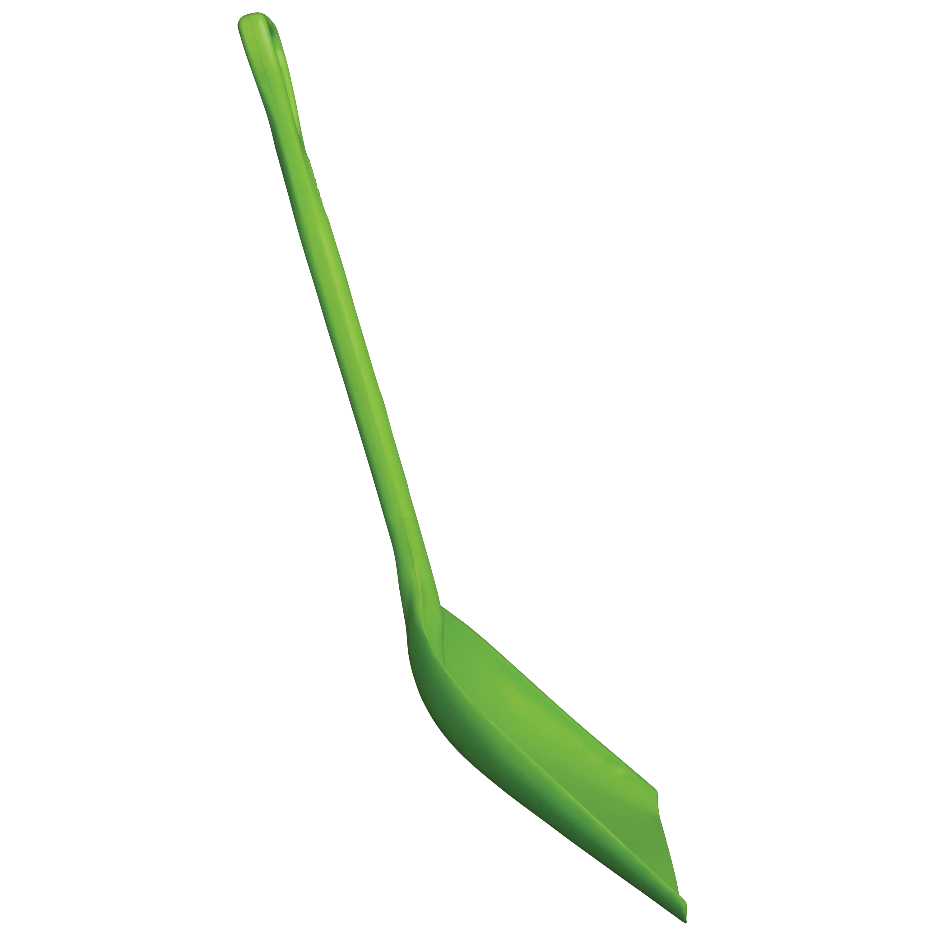 Large, flat shovel pan efficiently moves bulk materials, ingredients, and waste