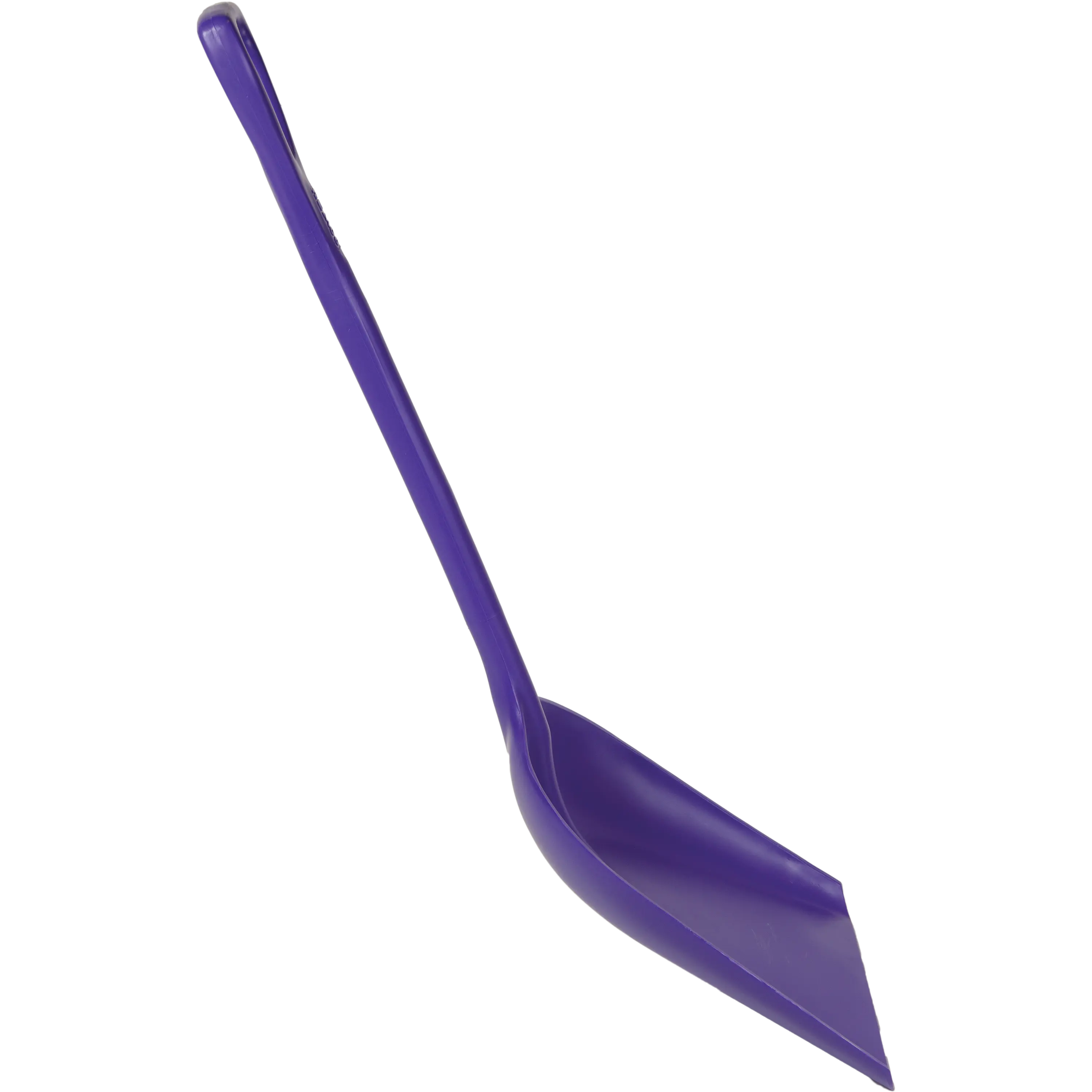 Large, flat shovel pan efficiently moves bulk materials, ingredients, and waste