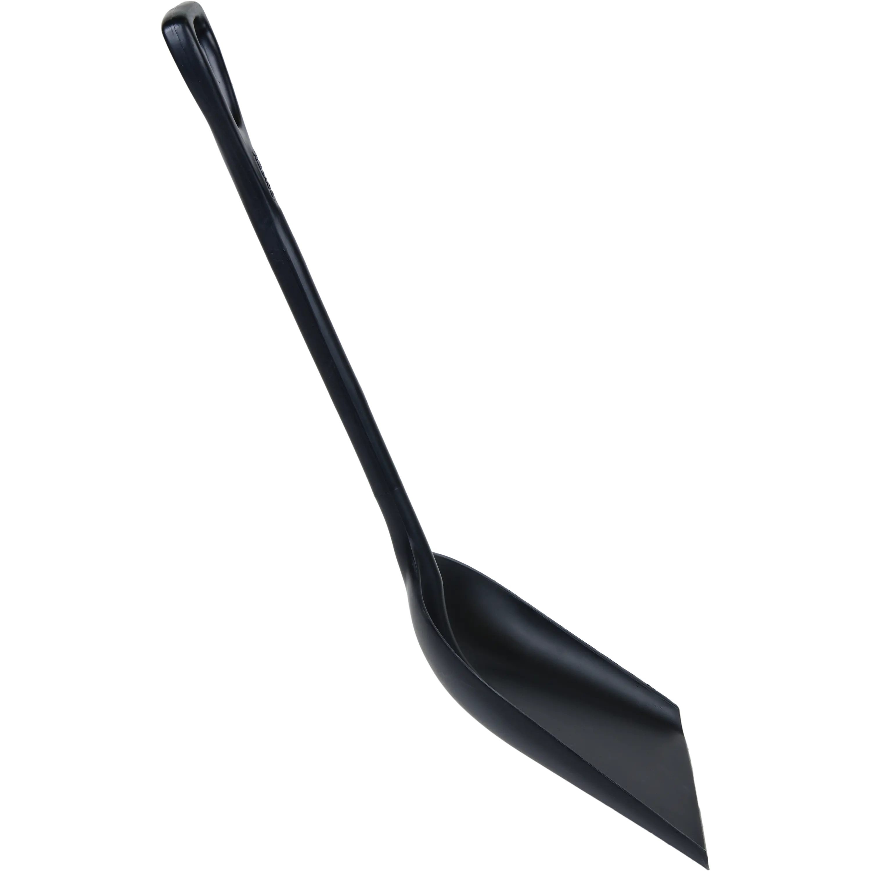 Large, flat shovel pan efficiently moves bulk materials, ingredients, and waste
