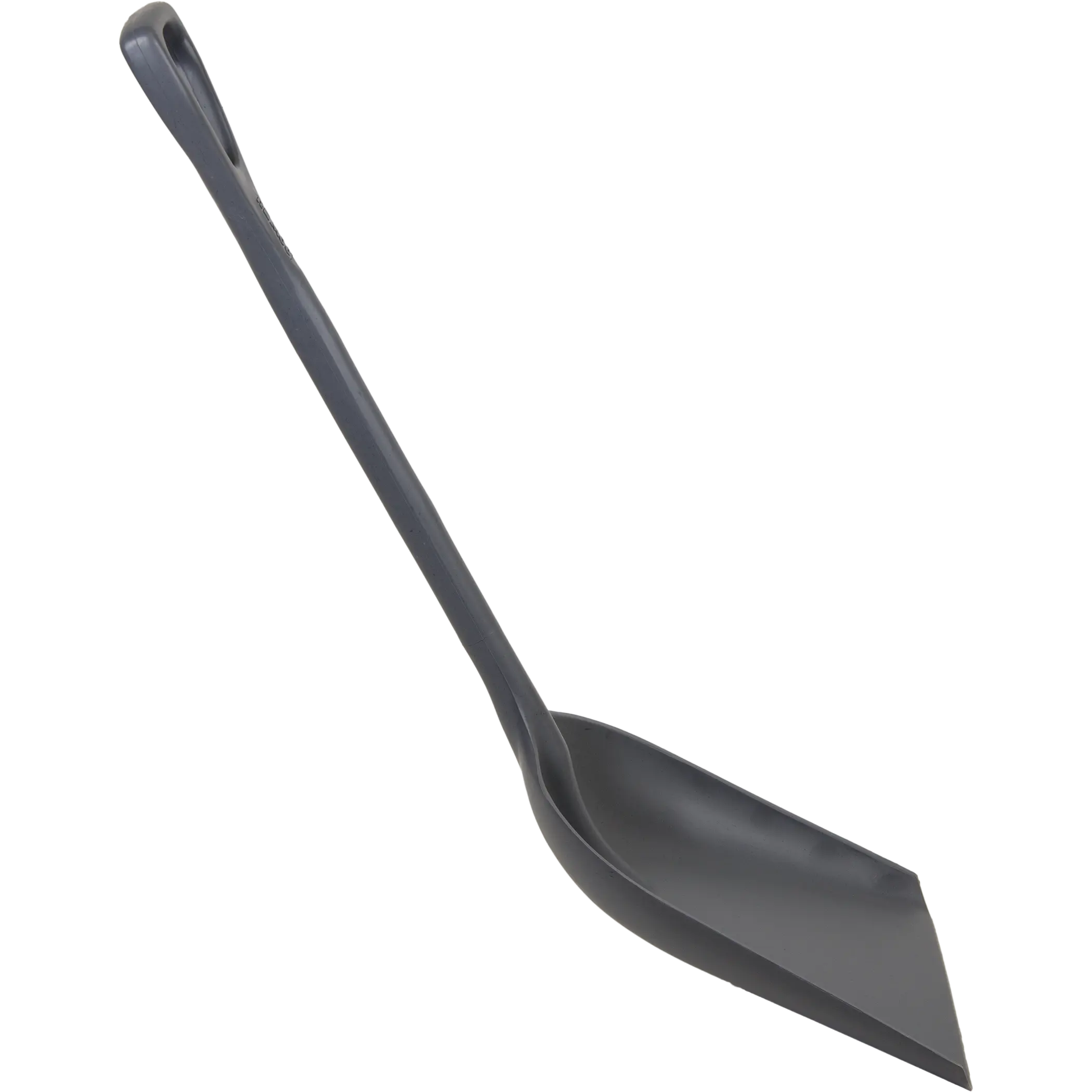 Large, flat shovel pan efficiently moves bulk materials, ingredients, and waste