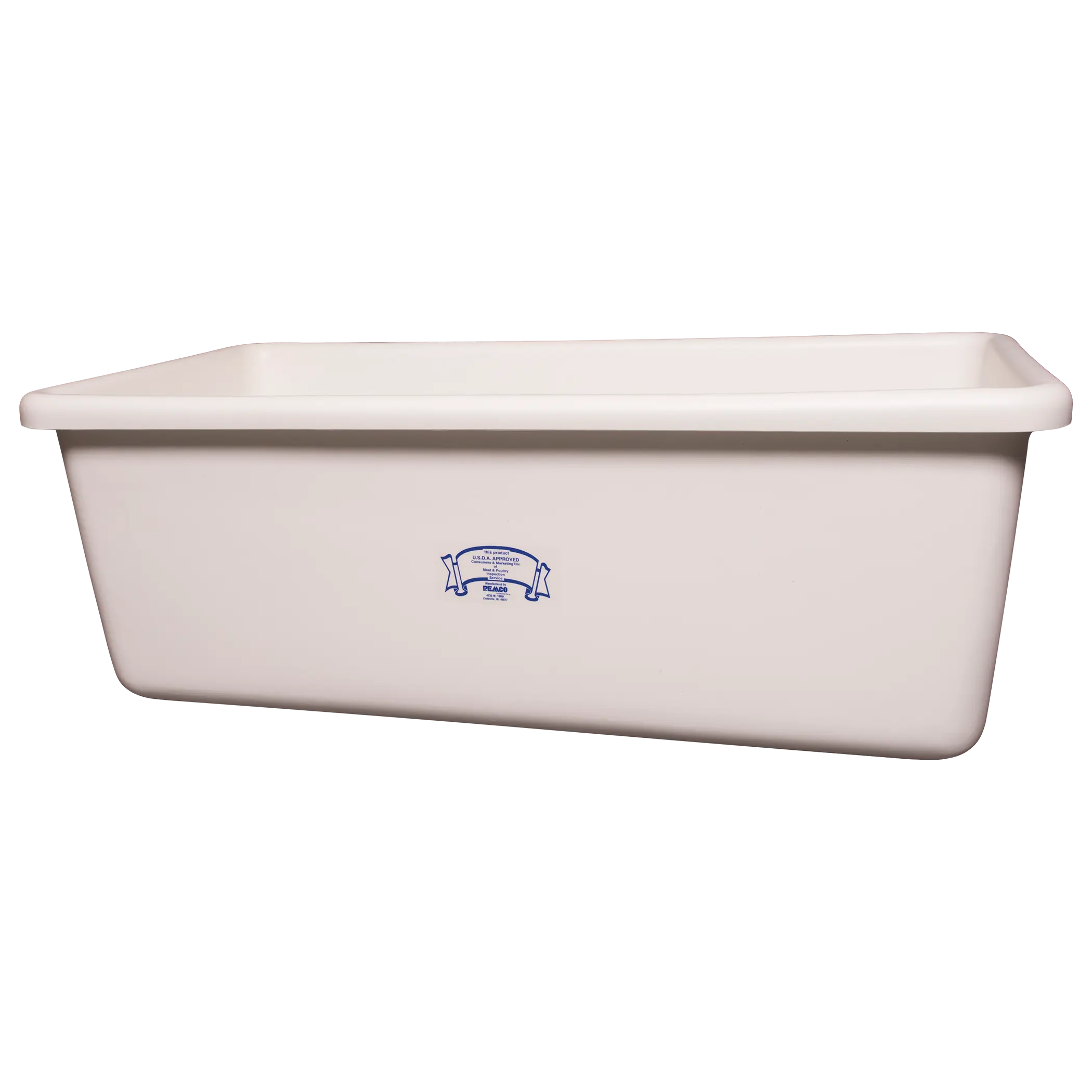 Remco tubs and tub accessories offer a combination of durability and versatility. Manufactured from high-density polyethylene, they can be used for transporting, freezing and storing. Tubs are available as stand-alone items or with low steel undercarriages. These tubs meet all USDA specifications and are commonly used for meat, seafood, poultry, commercial fishing, confectionery, bakery, and grain applications. This model has been altered to include a drain plug.